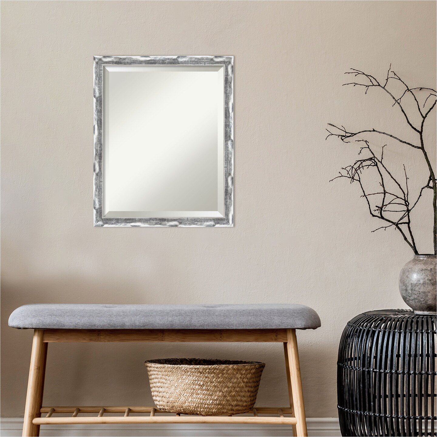 Beveled Bathroom Wall Mirror, Scratched Wave Chrome Frame