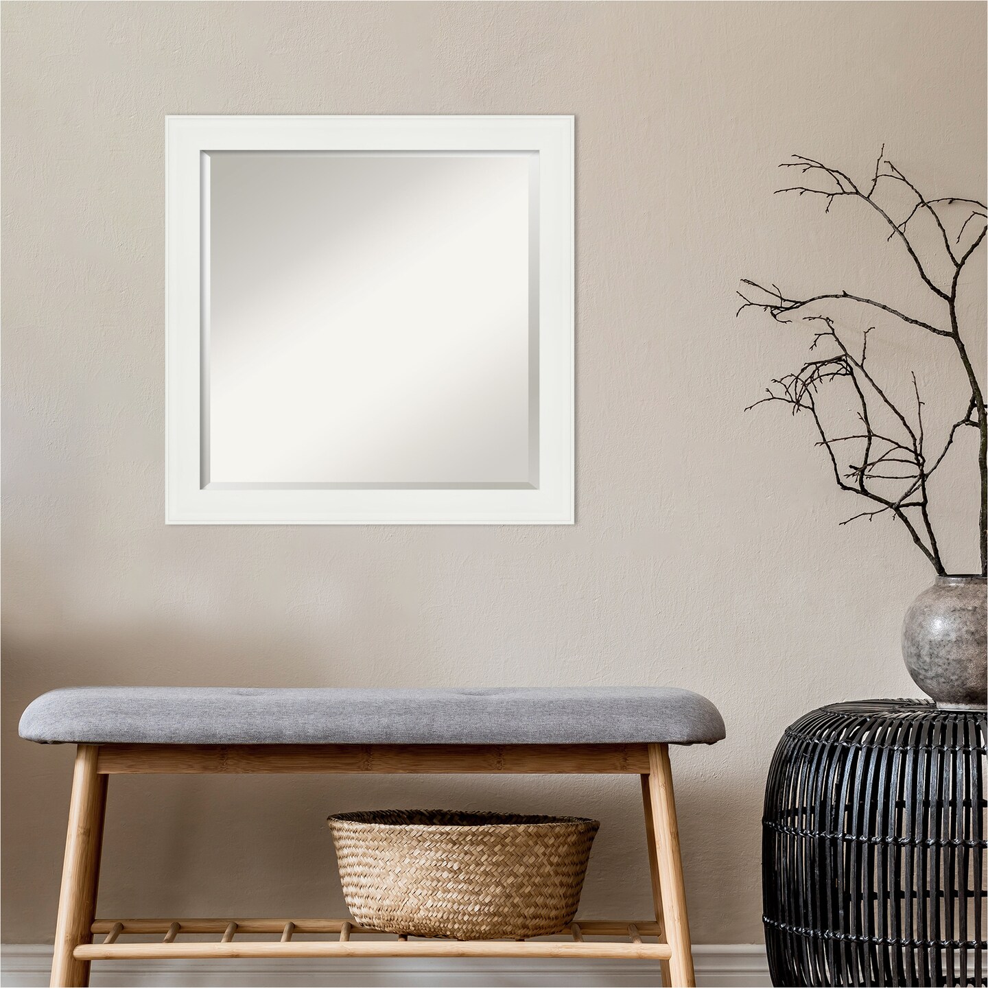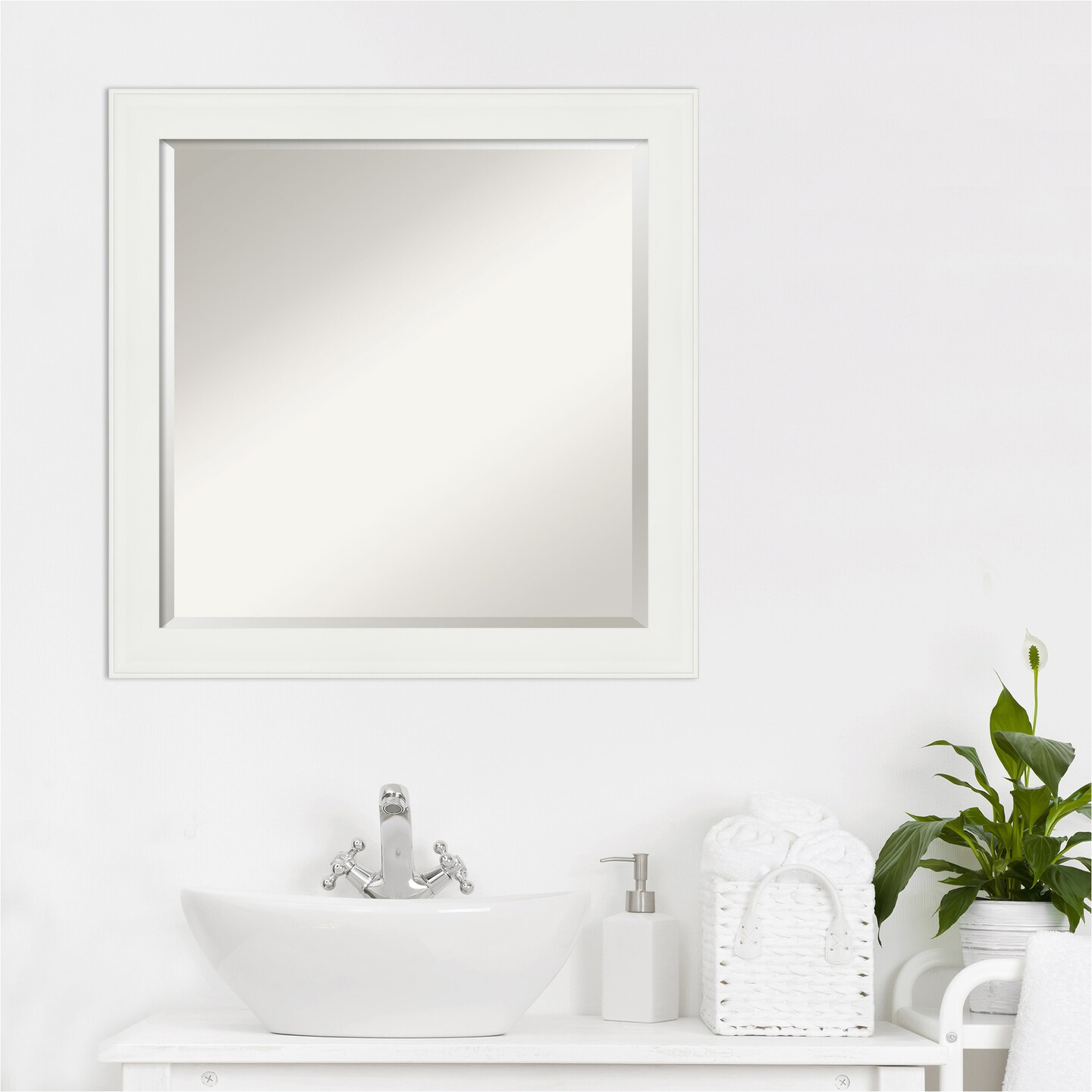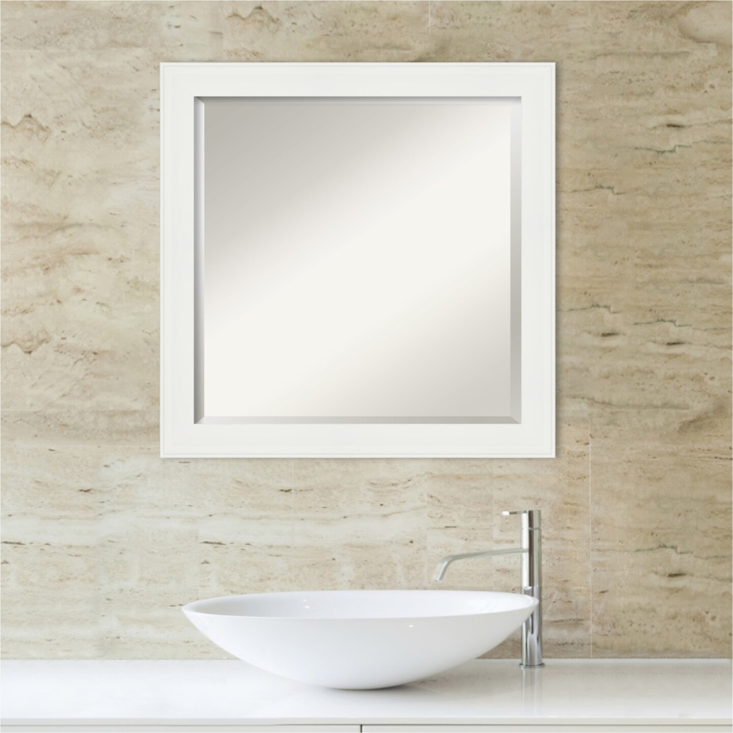 Beveled Bathroom Wall Mirror, Vanity White Narrow Frame