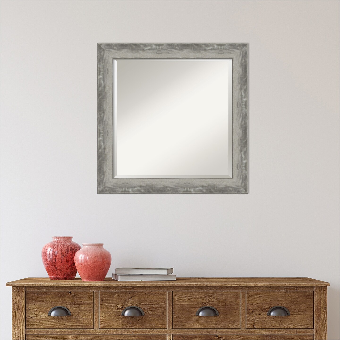 Beveled Bathroom Wall Mirror, Waveline Silver Narrow Frame