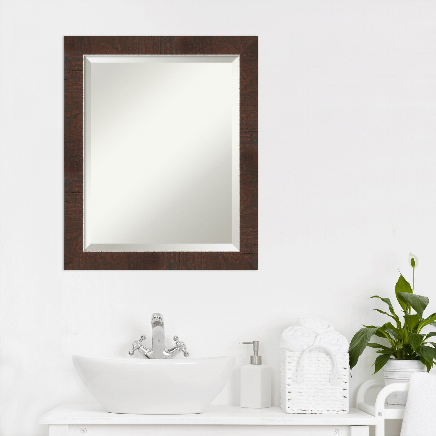 Beveled Bathroom Wall Mirror, Wildwood Brown Narrow Frame