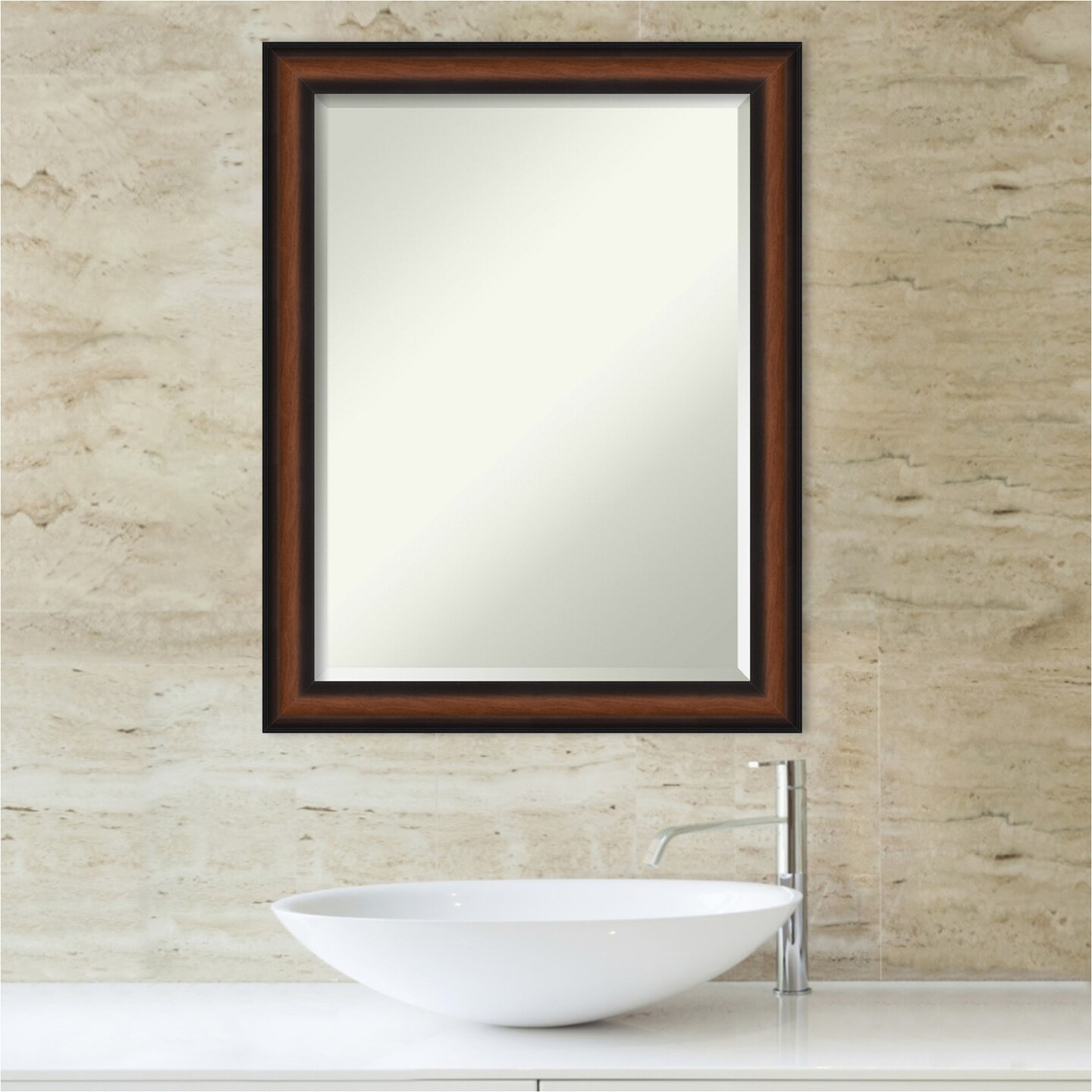 Beveled Bathroom Wall Mirror, Yale Walnut Frame