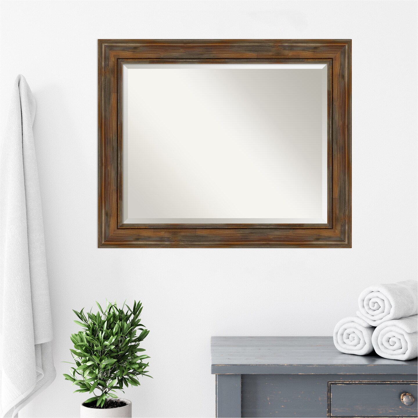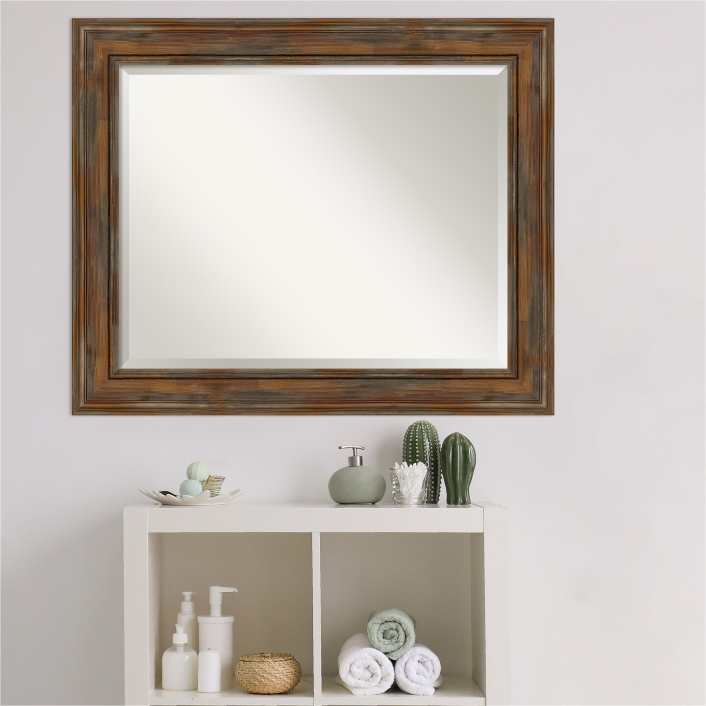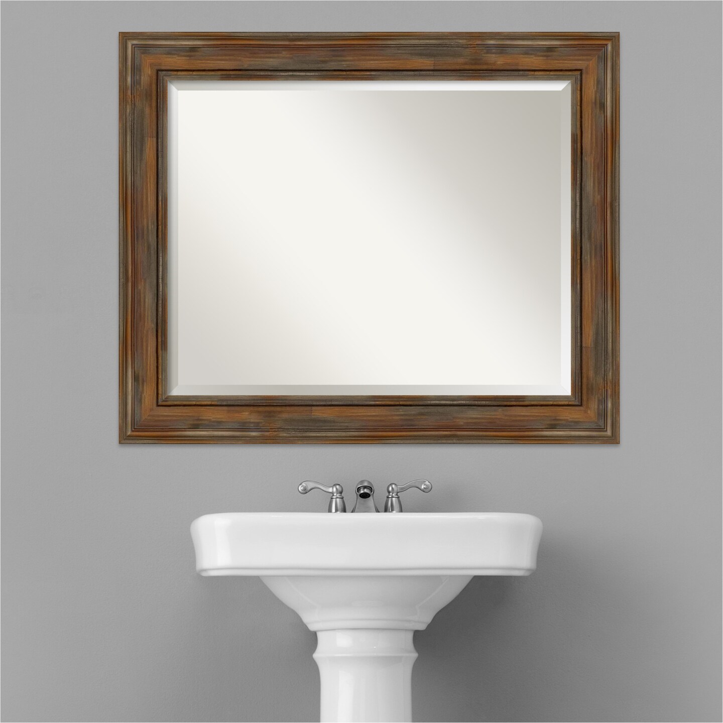 Beveled Wood Bathroom Wall Mirror, Alexandria Frame