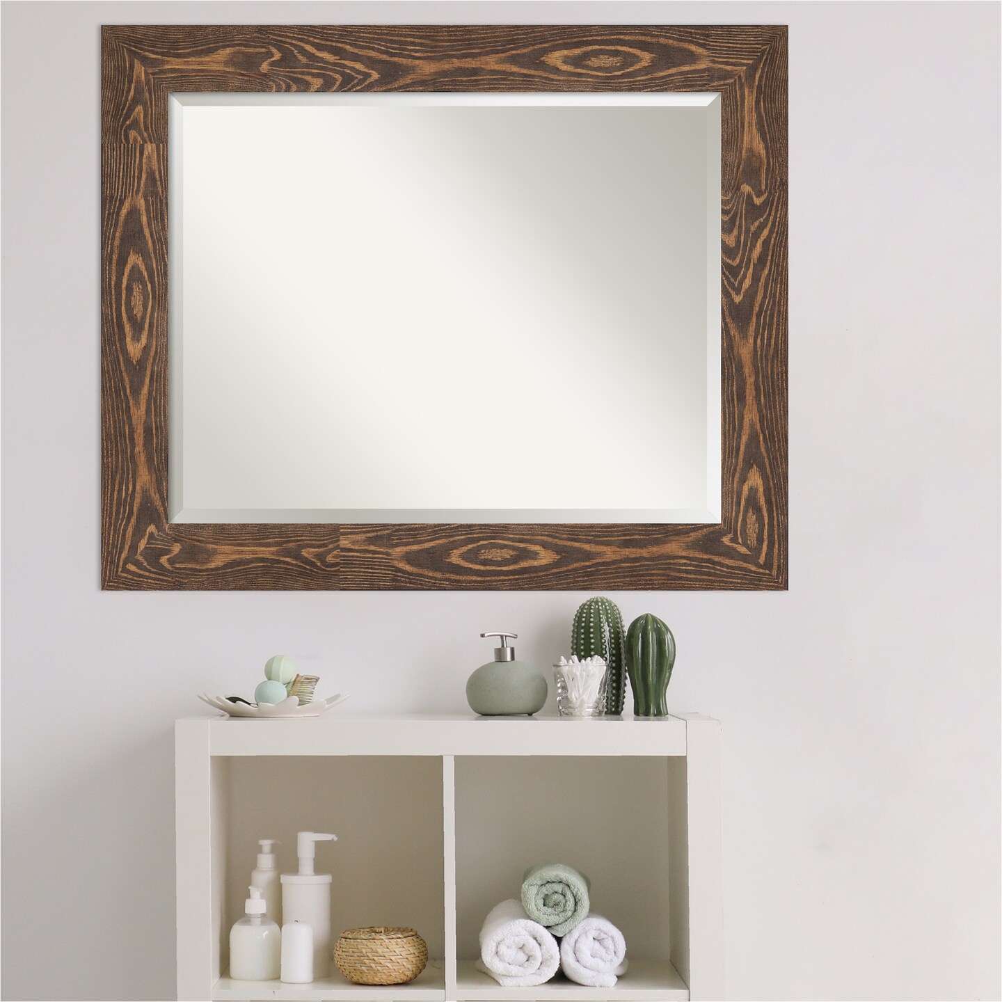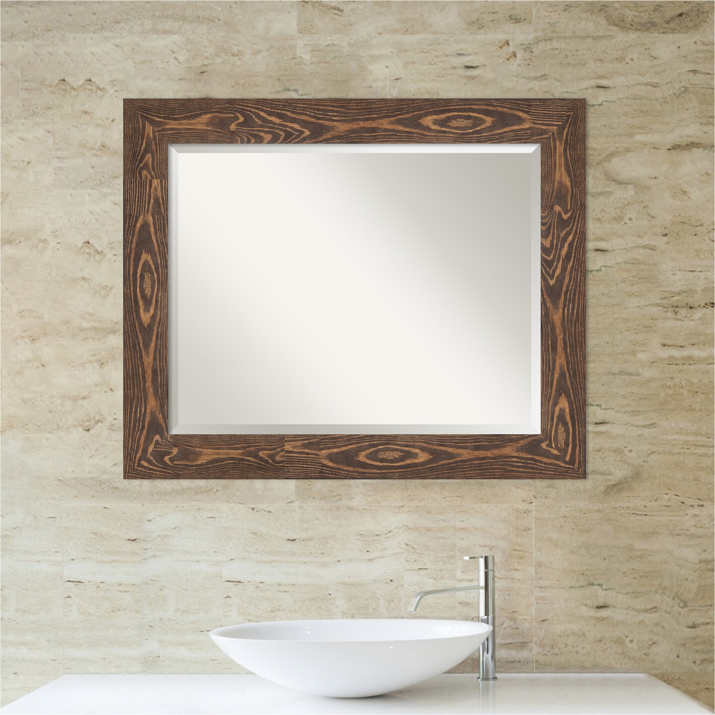 Beveled Wood Bathroom Wall Mirror, Bridge Frame