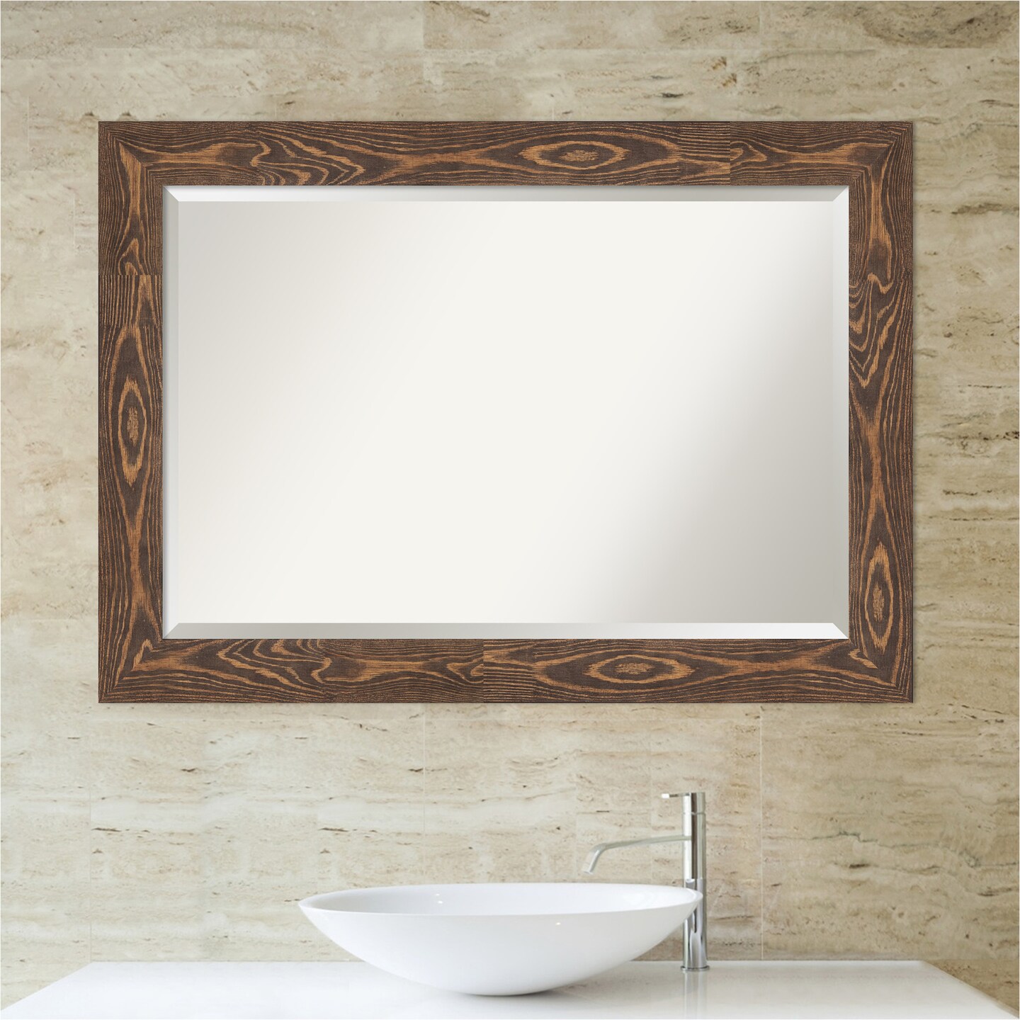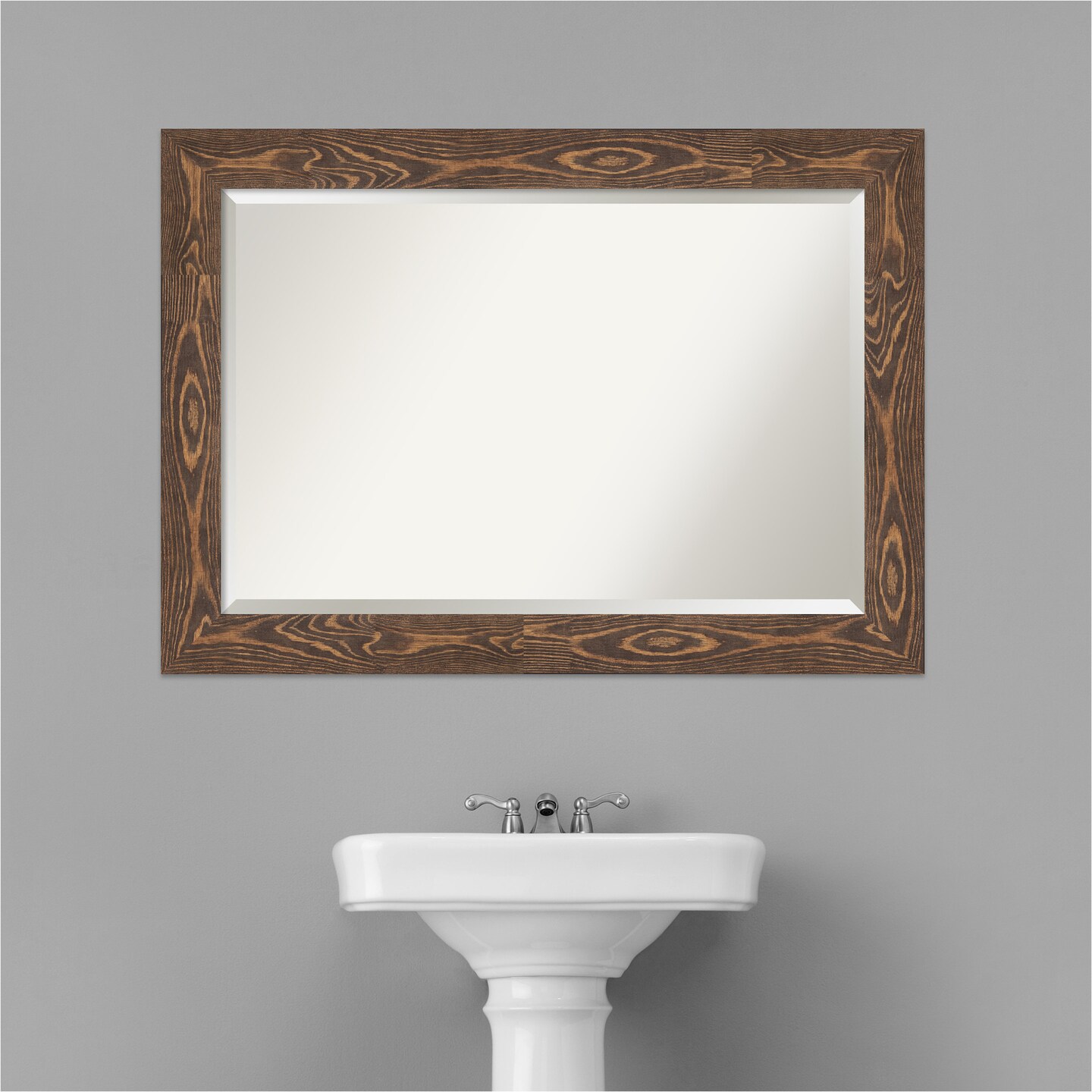 Beveled Wood Bathroom Wall Mirror, Bridge Frame