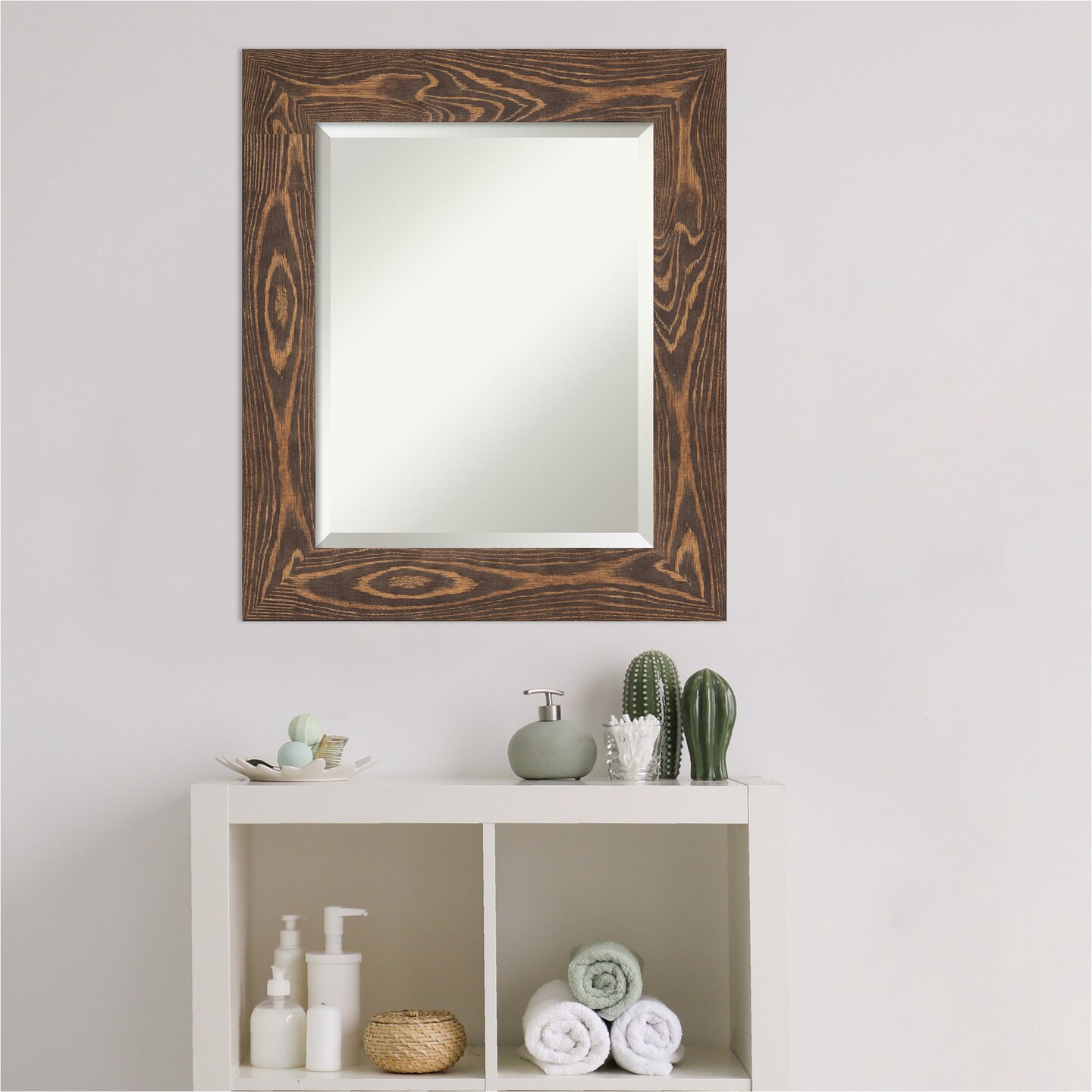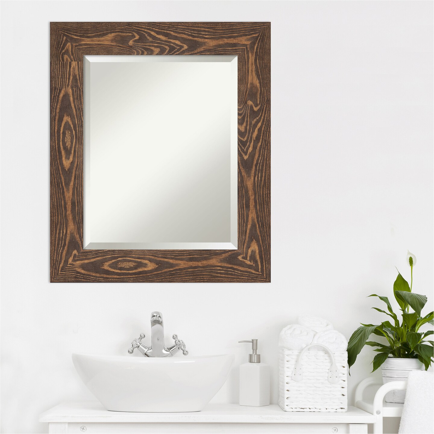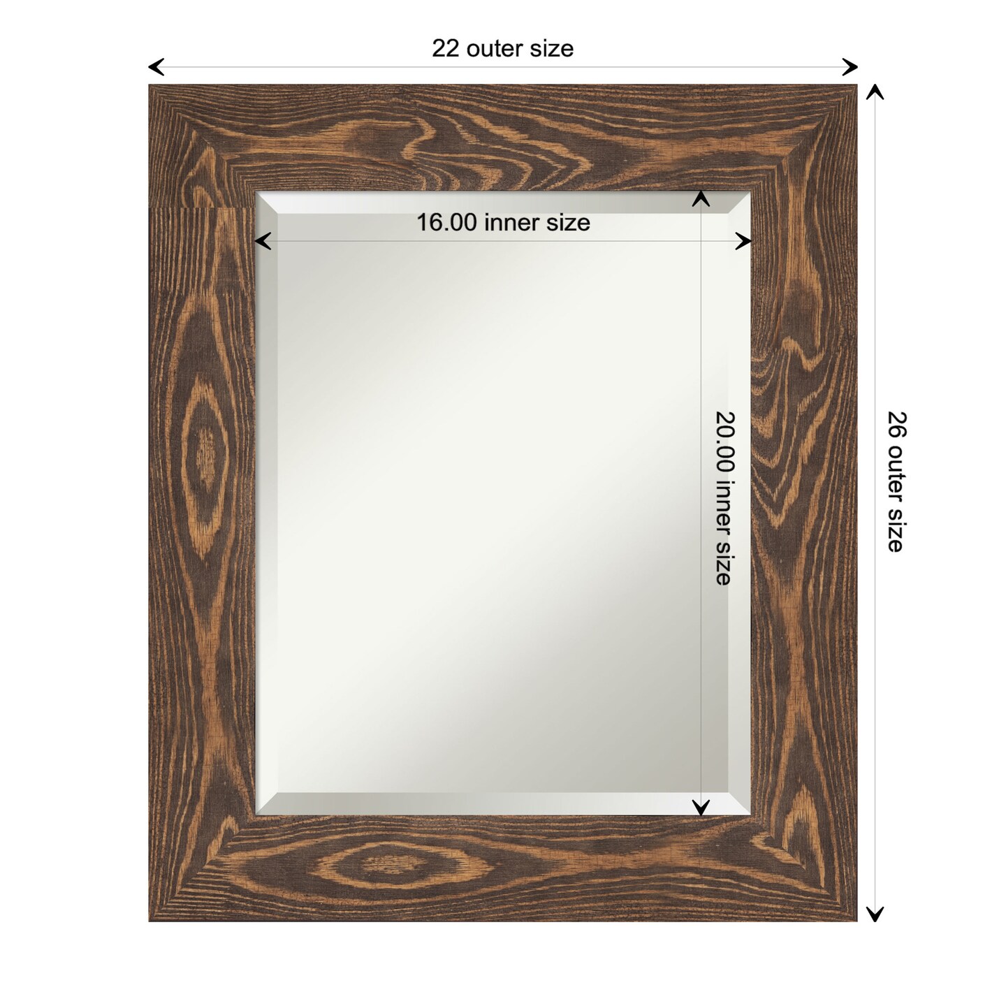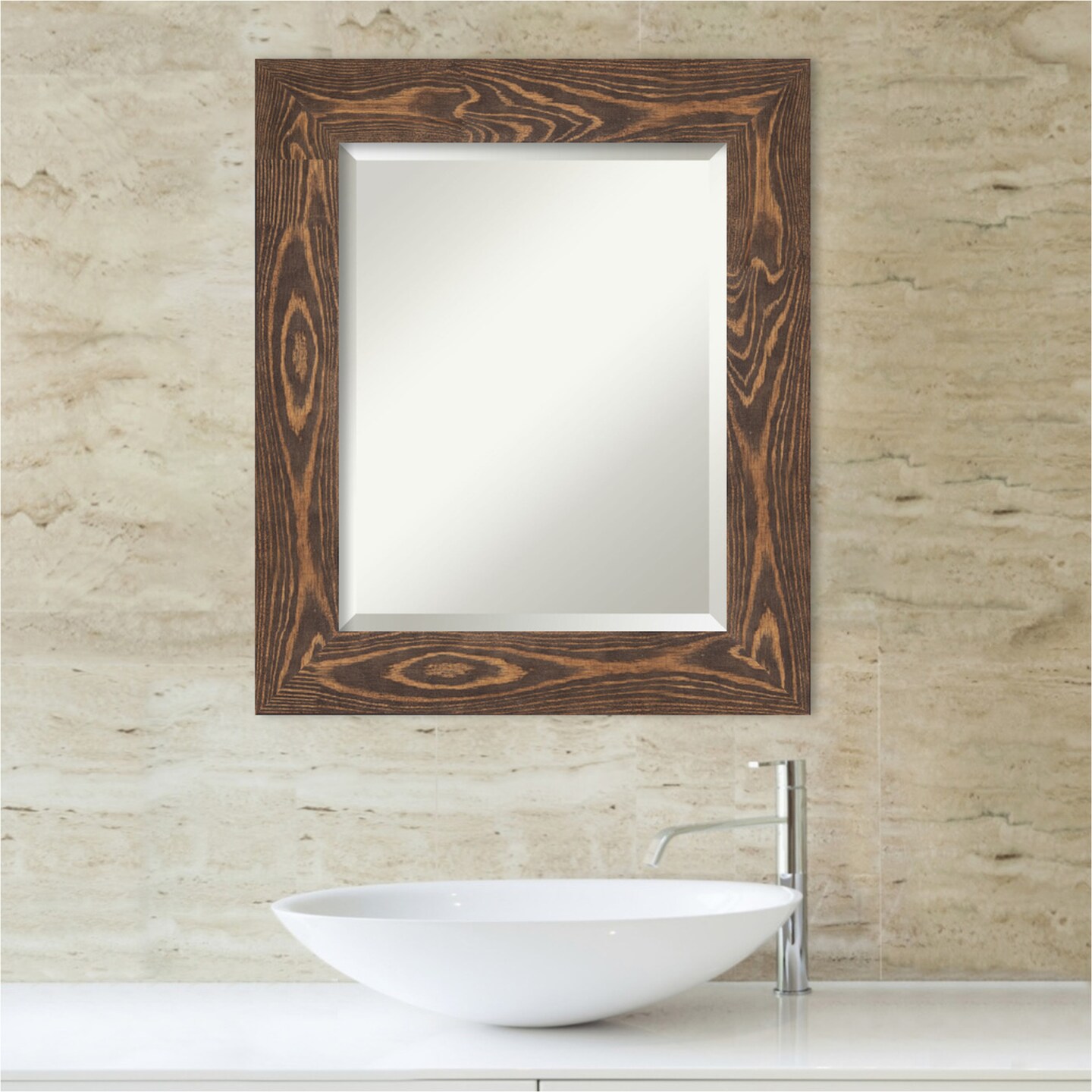 Beveled Wood Bathroom Wall Mirror, Bridge Frame