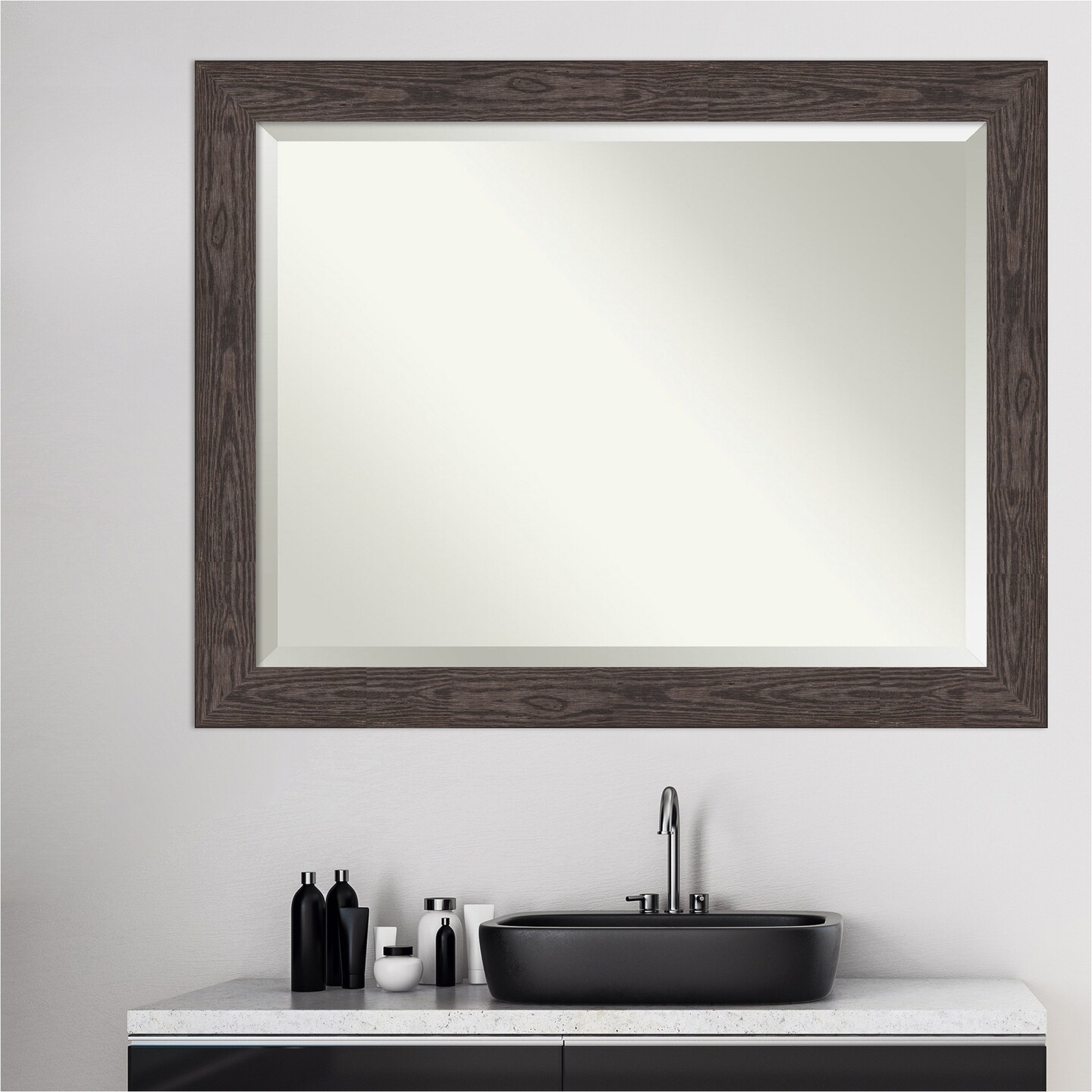 Beveled Wood Bathroom Wall Mirror, Bridge Frame