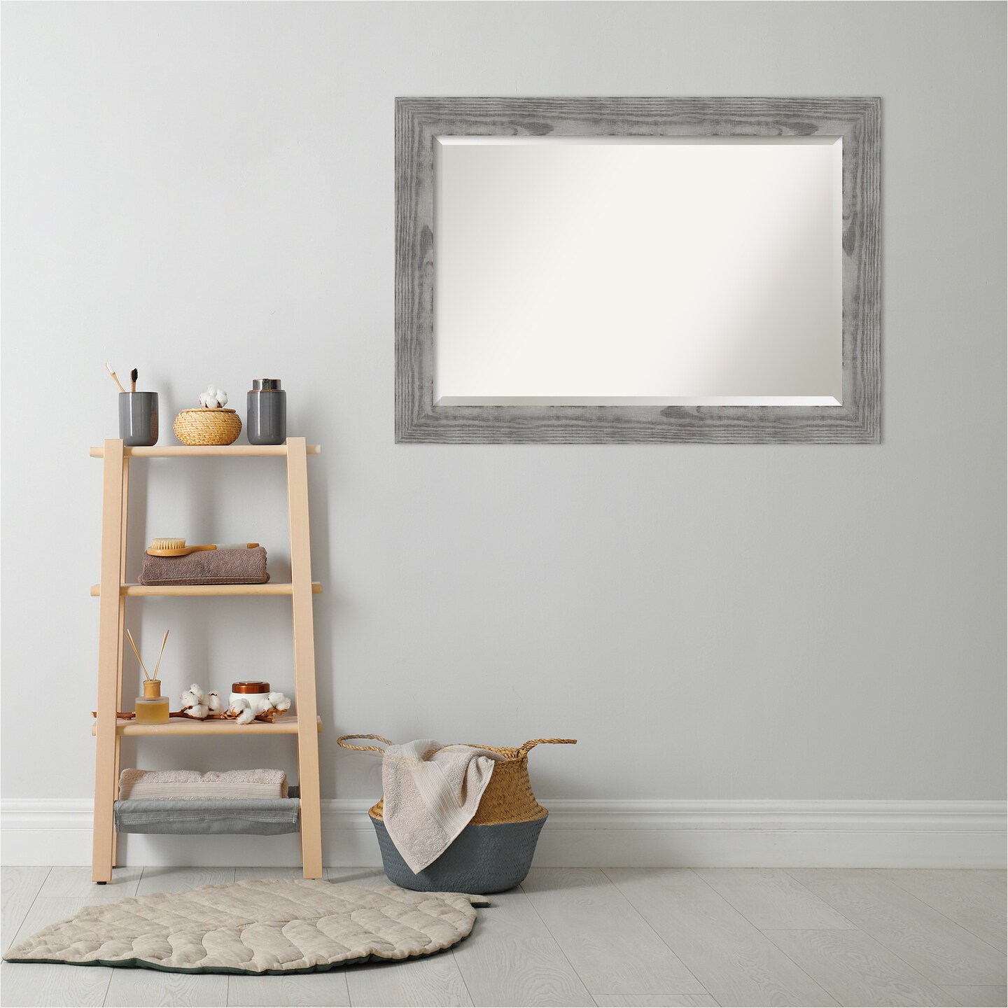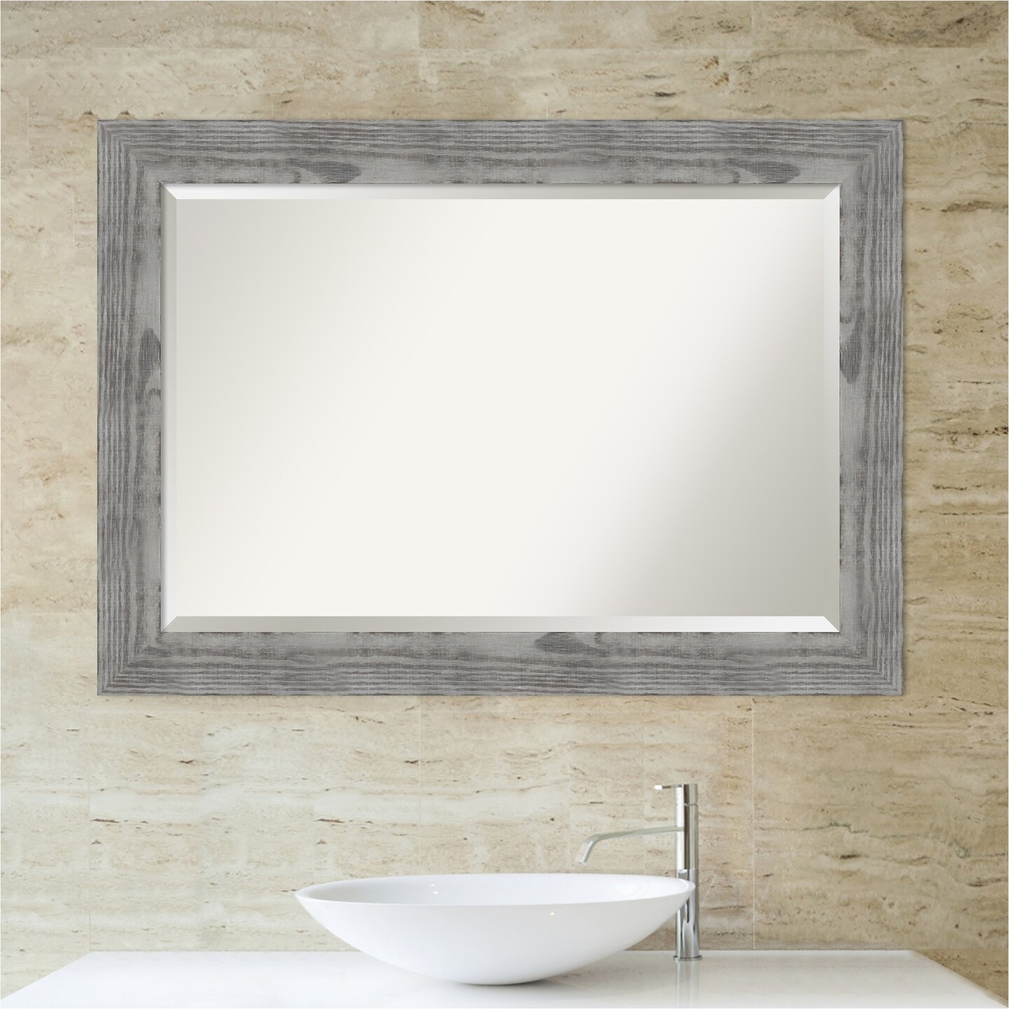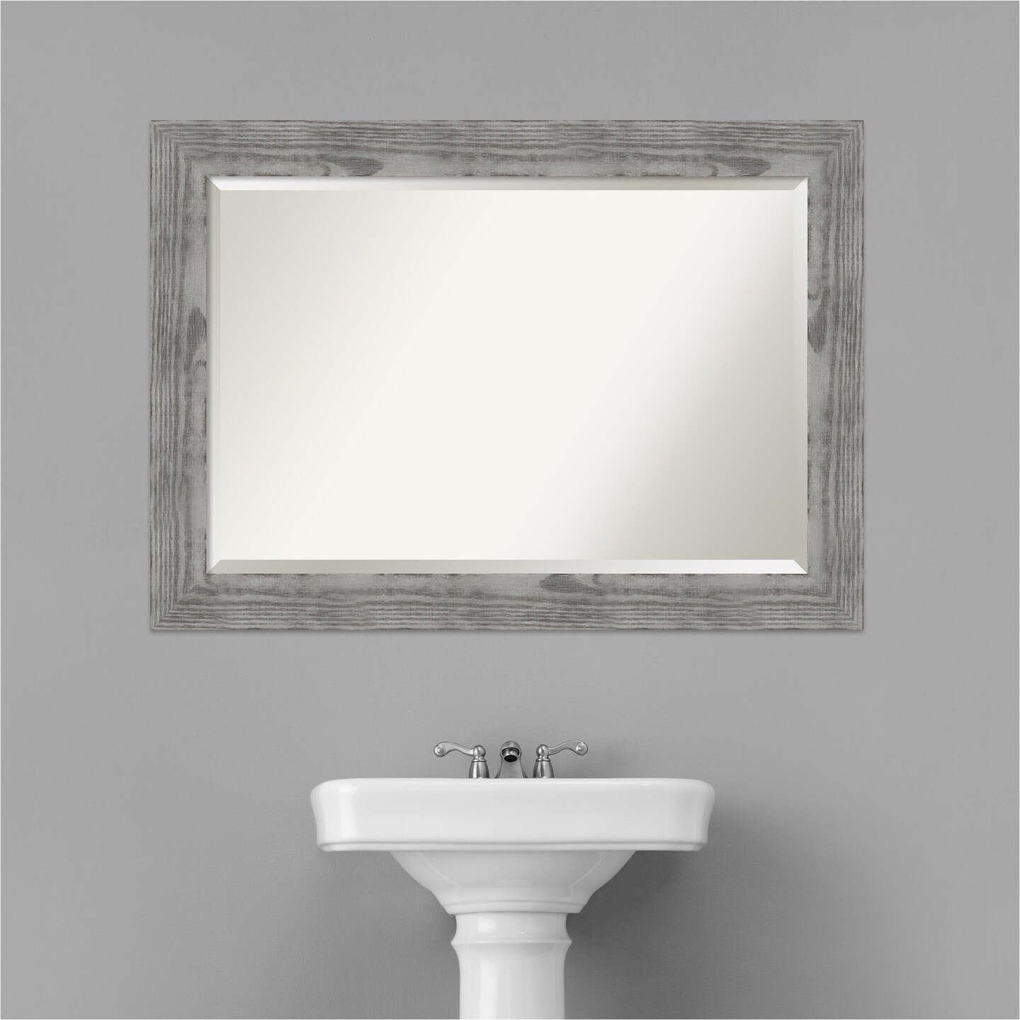 Beveled Wood Bathroom Wall Mirror, Bridge Frame