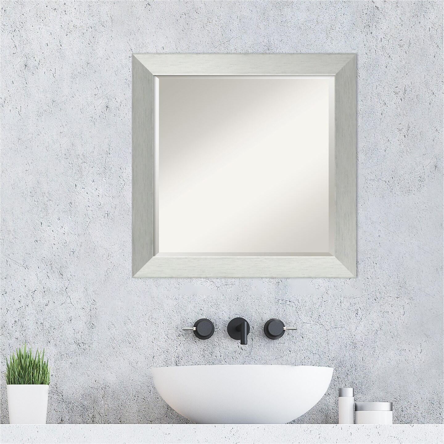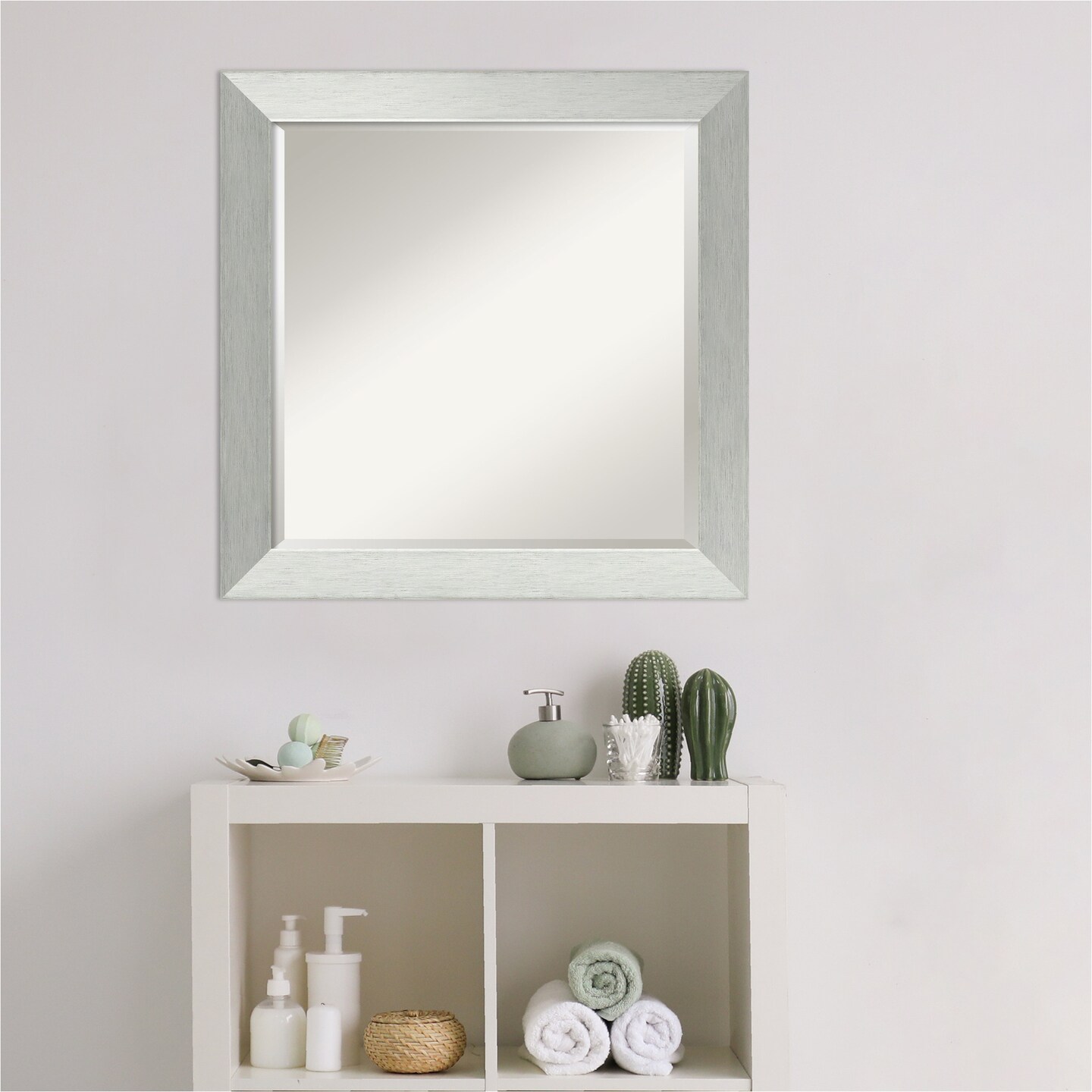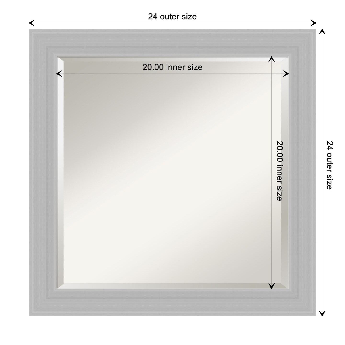 Beveled Wood Bathroom Wall Mirror, Brushed Sterling Silver Frame