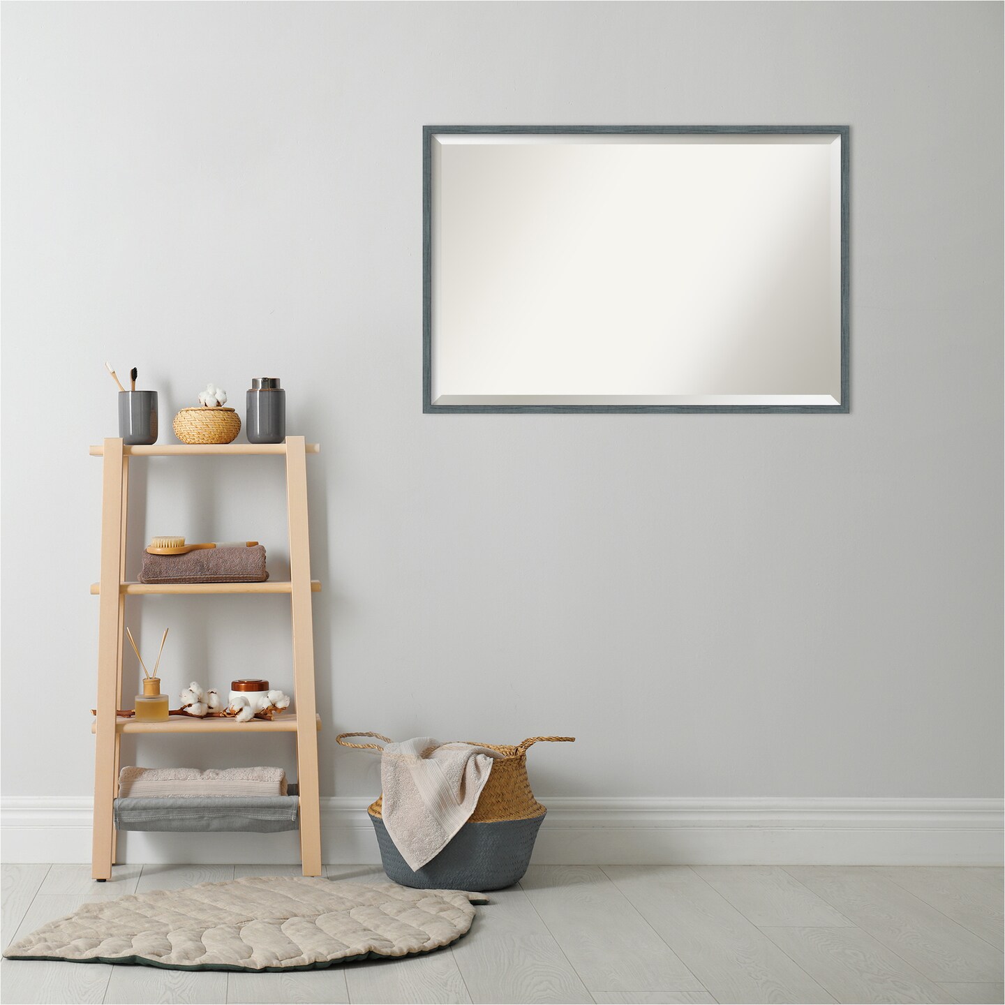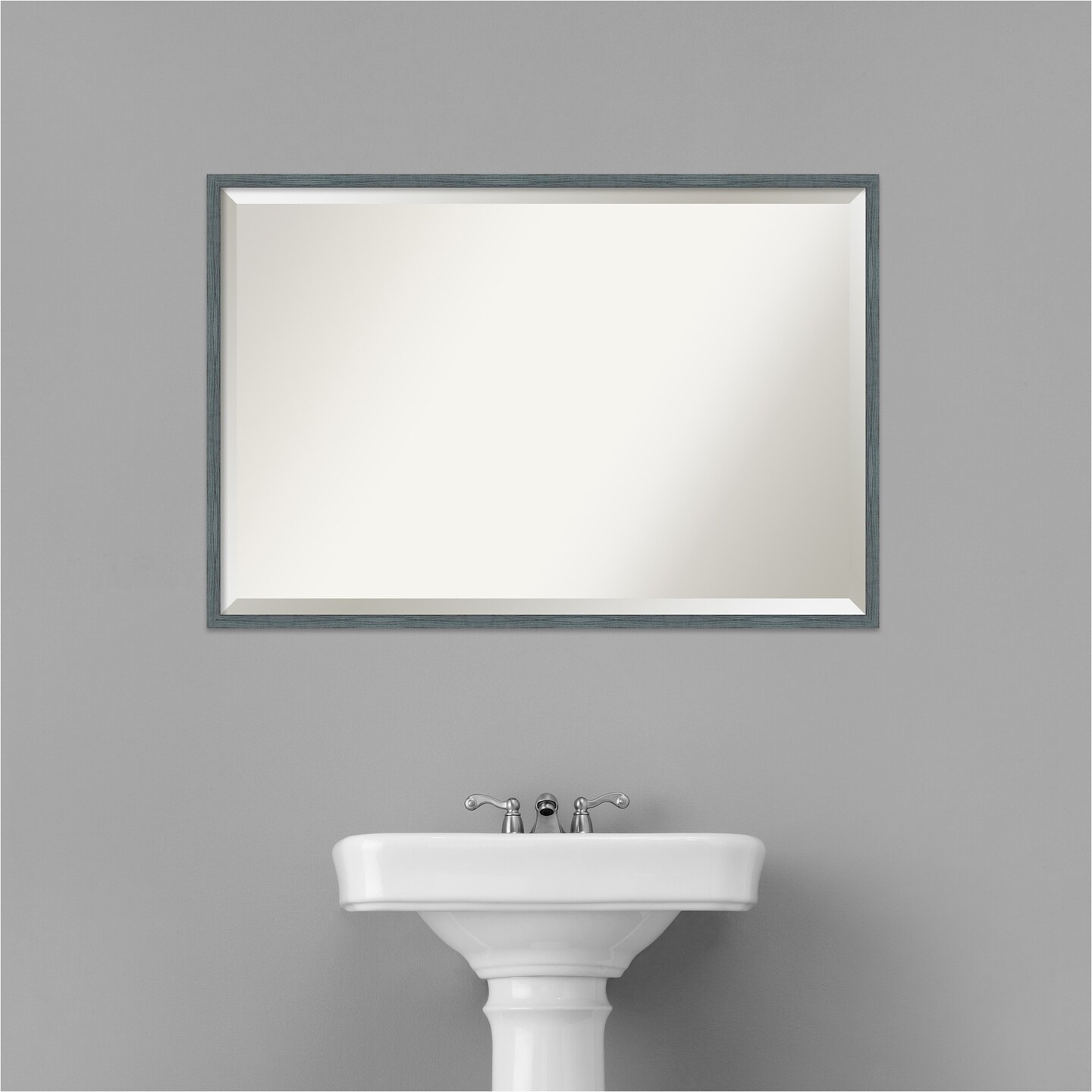Beveled Wood Bathroom Wall Mirror, Dixie Blue Grey Rustic Narrow Frame