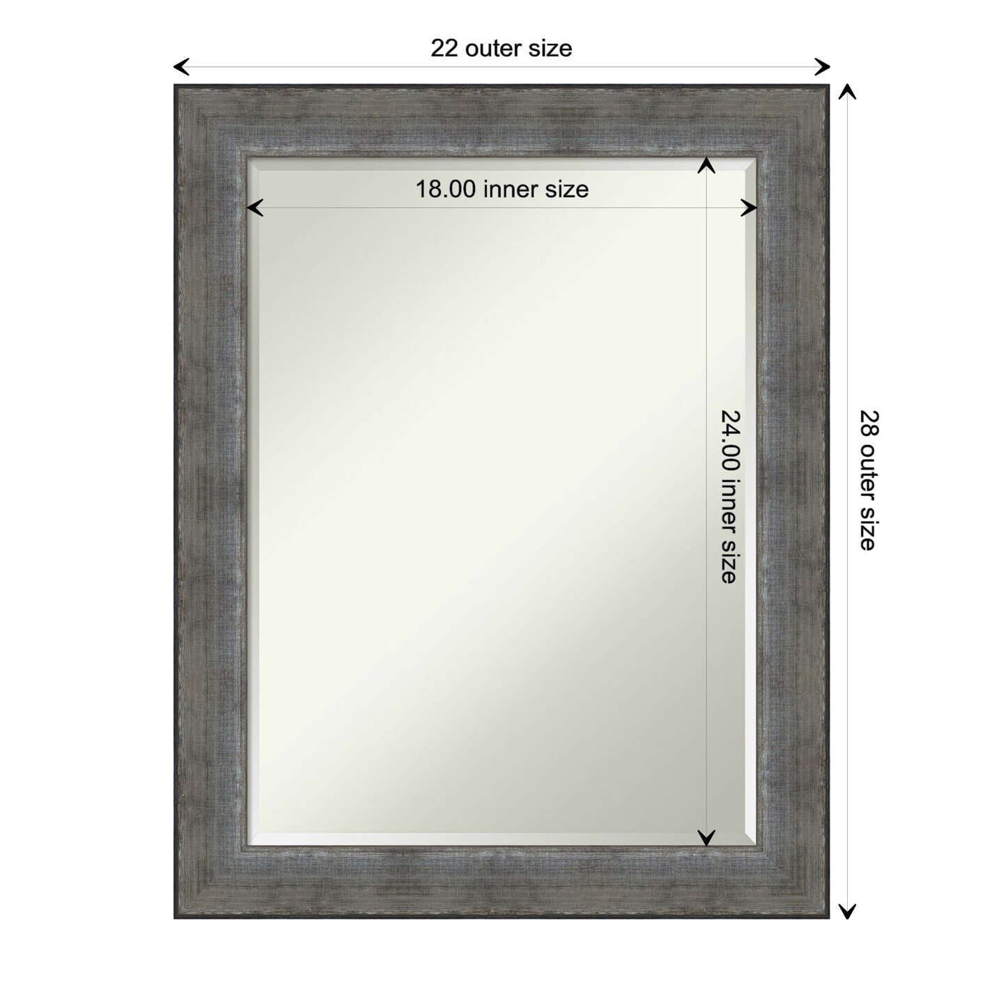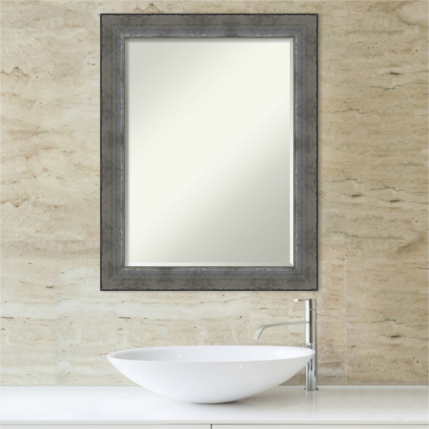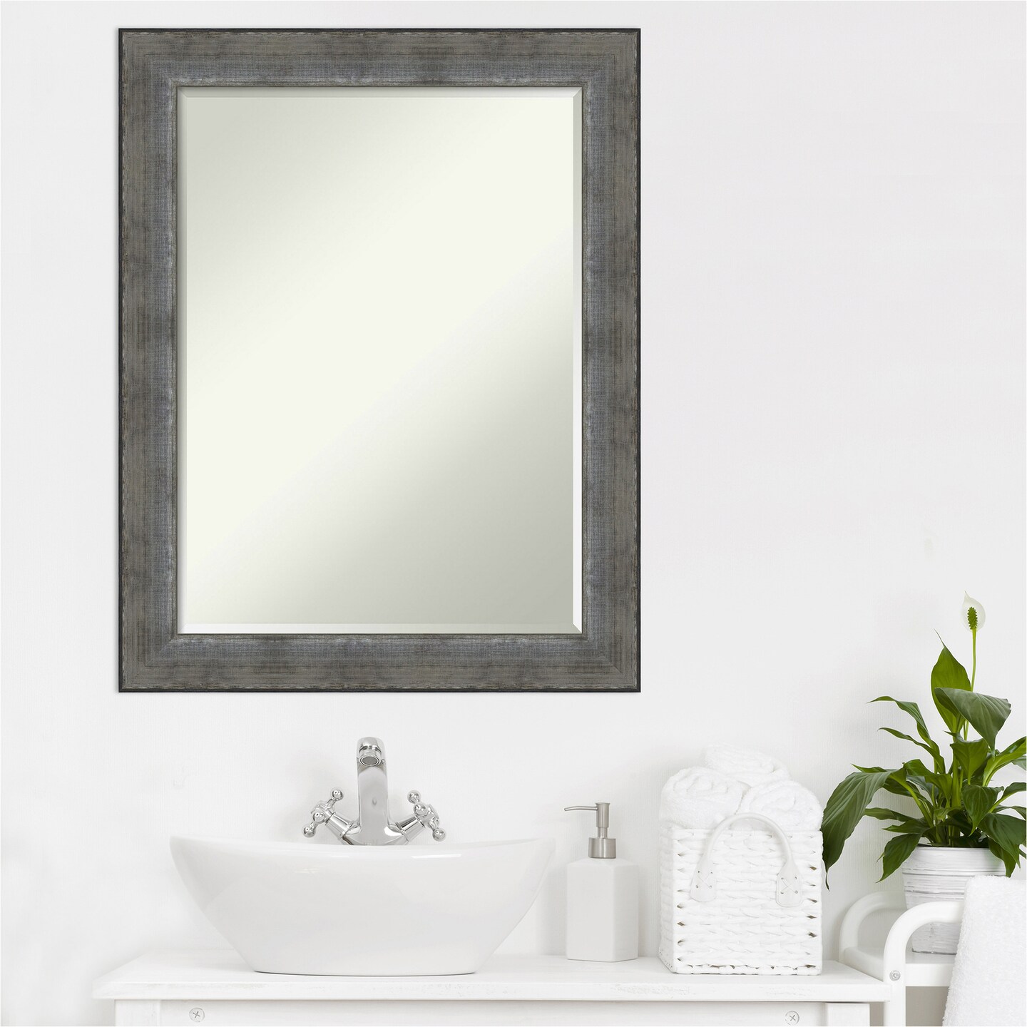 Beveled Wood Bathroom Wall Mirror, Forged Pewter Frame
