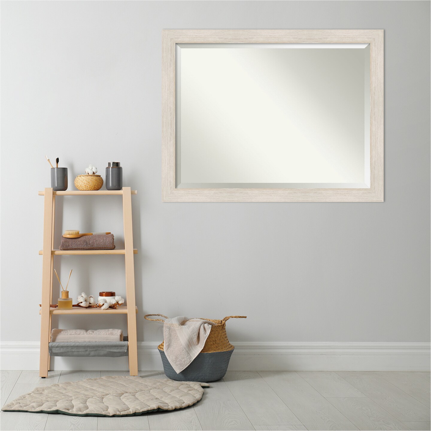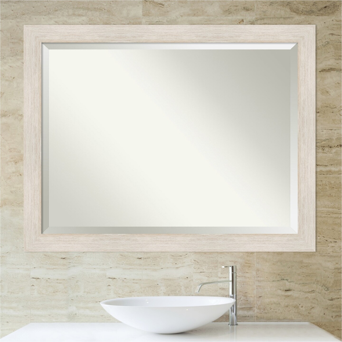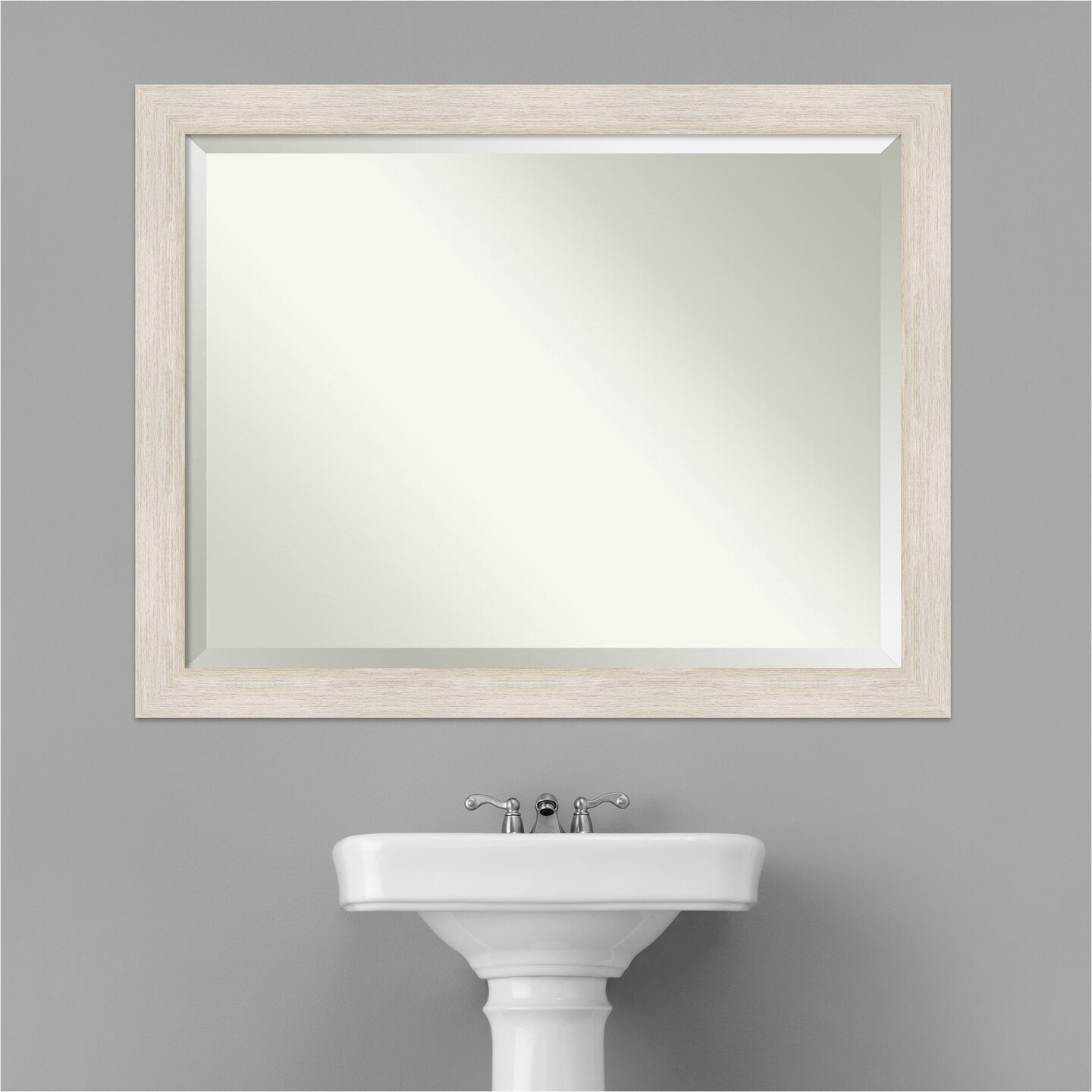 Beveled Wood Bathroom Wall Mirror, Hardwood Frame