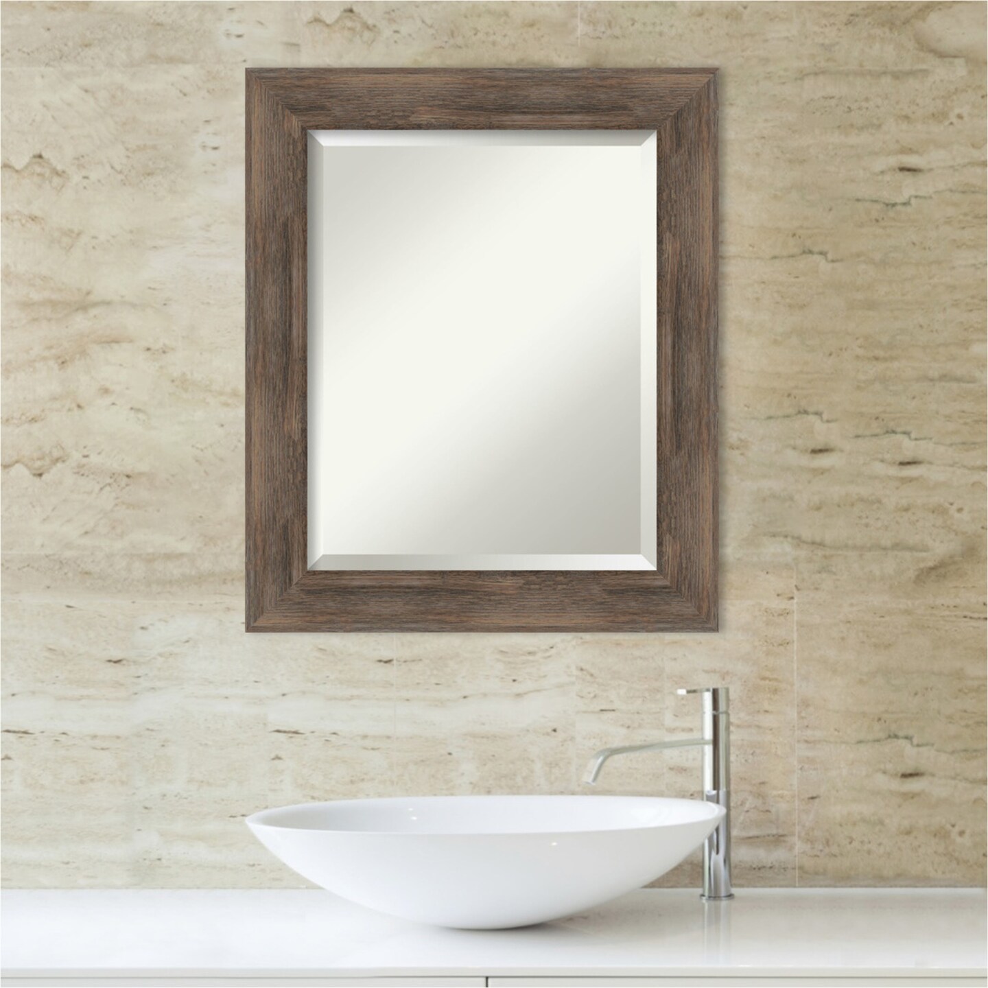 Beveled Wood Bathroom Wall Mirror, Hardwood Frame