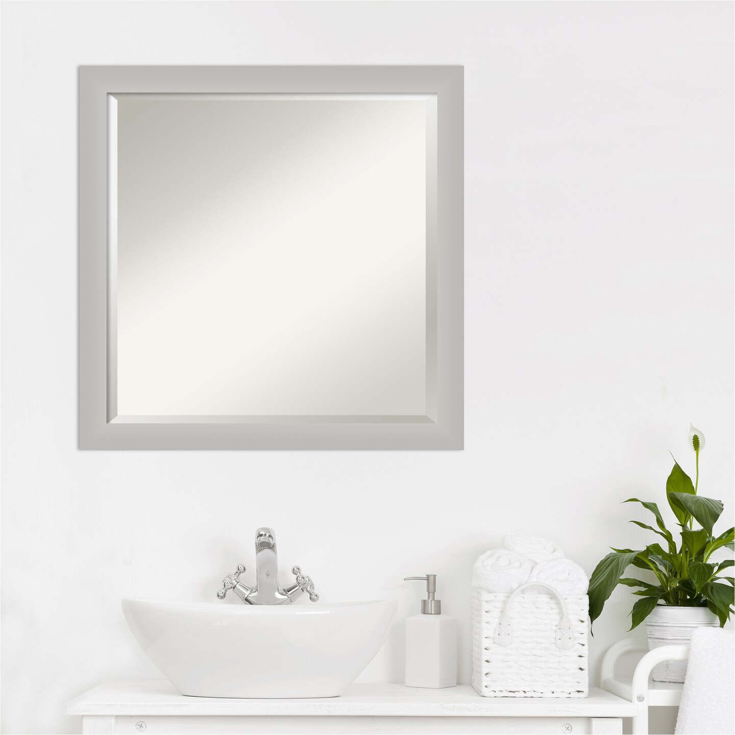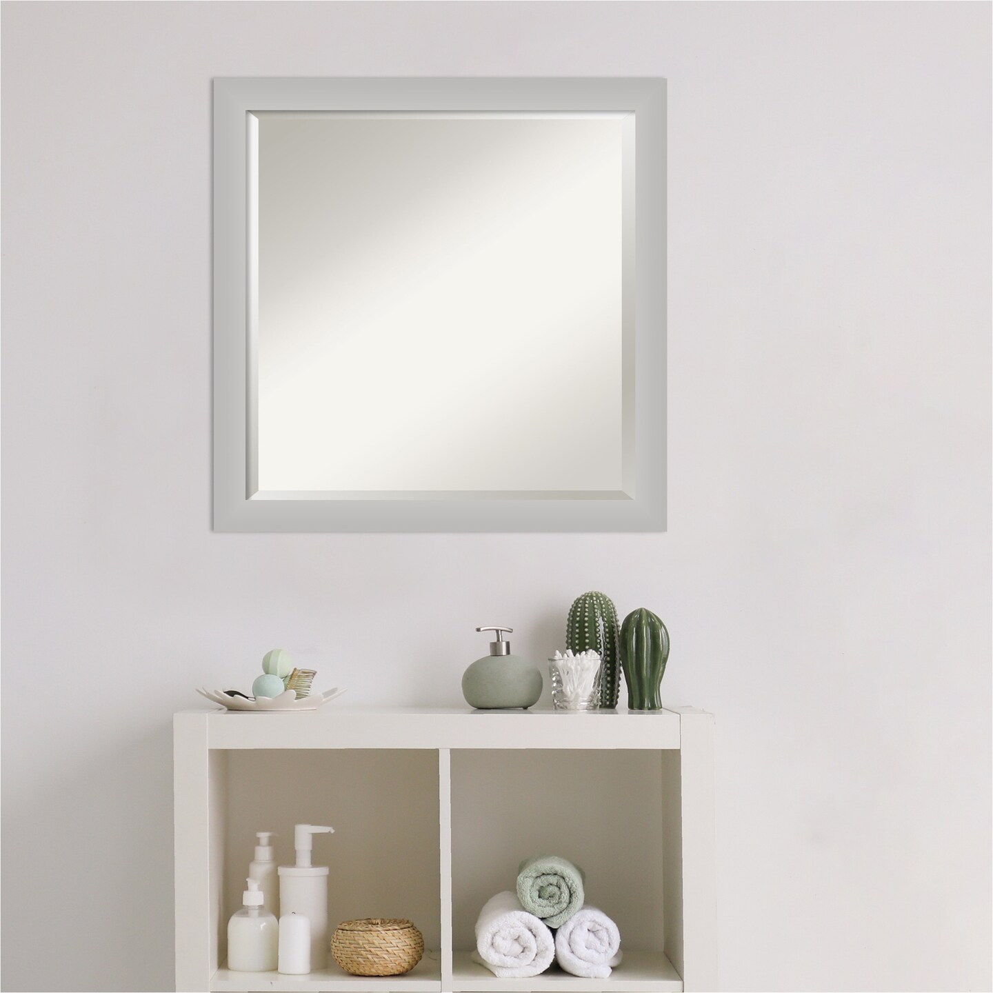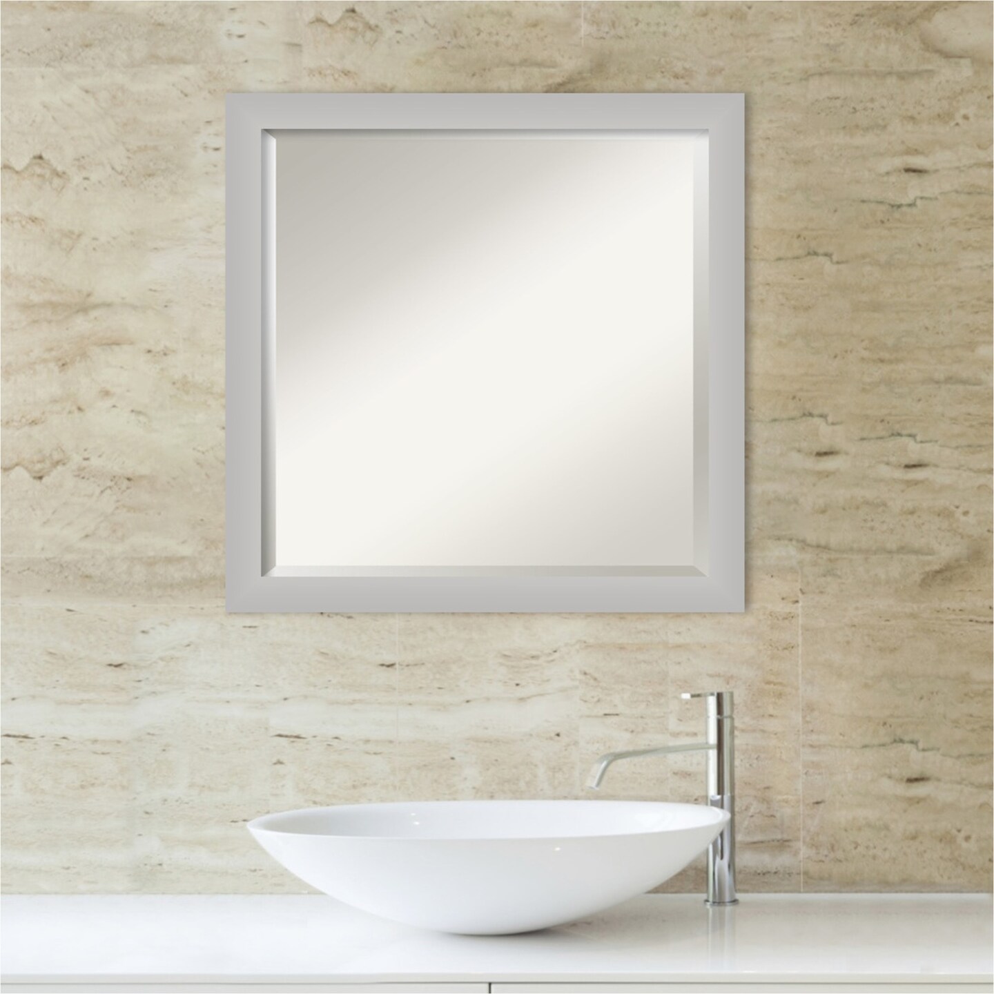 Beveled Wood Bathroom Wall Mirror, Low Luster Silver Frame