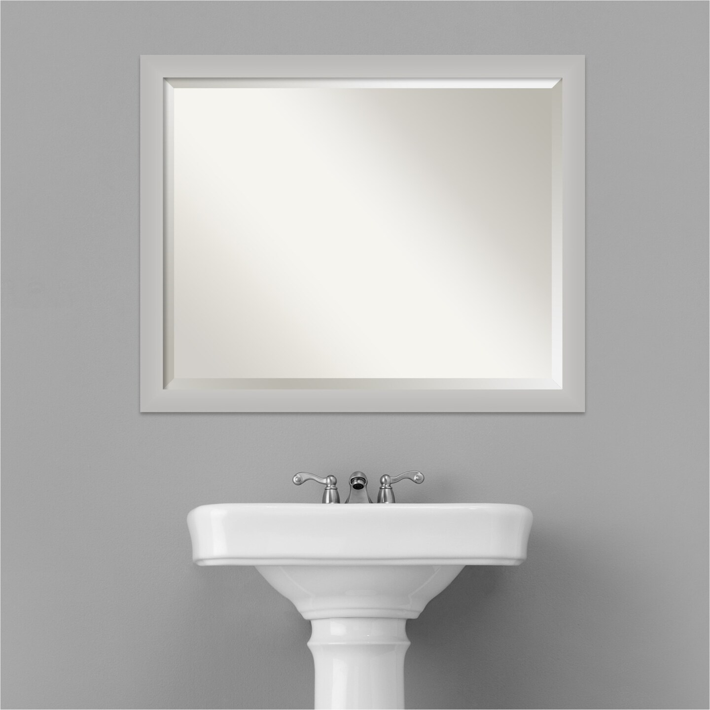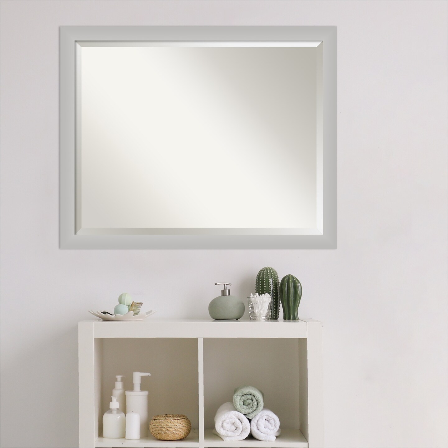Beveled Wood Bathroom Wall Mirror, Low Luster Silver Frame
