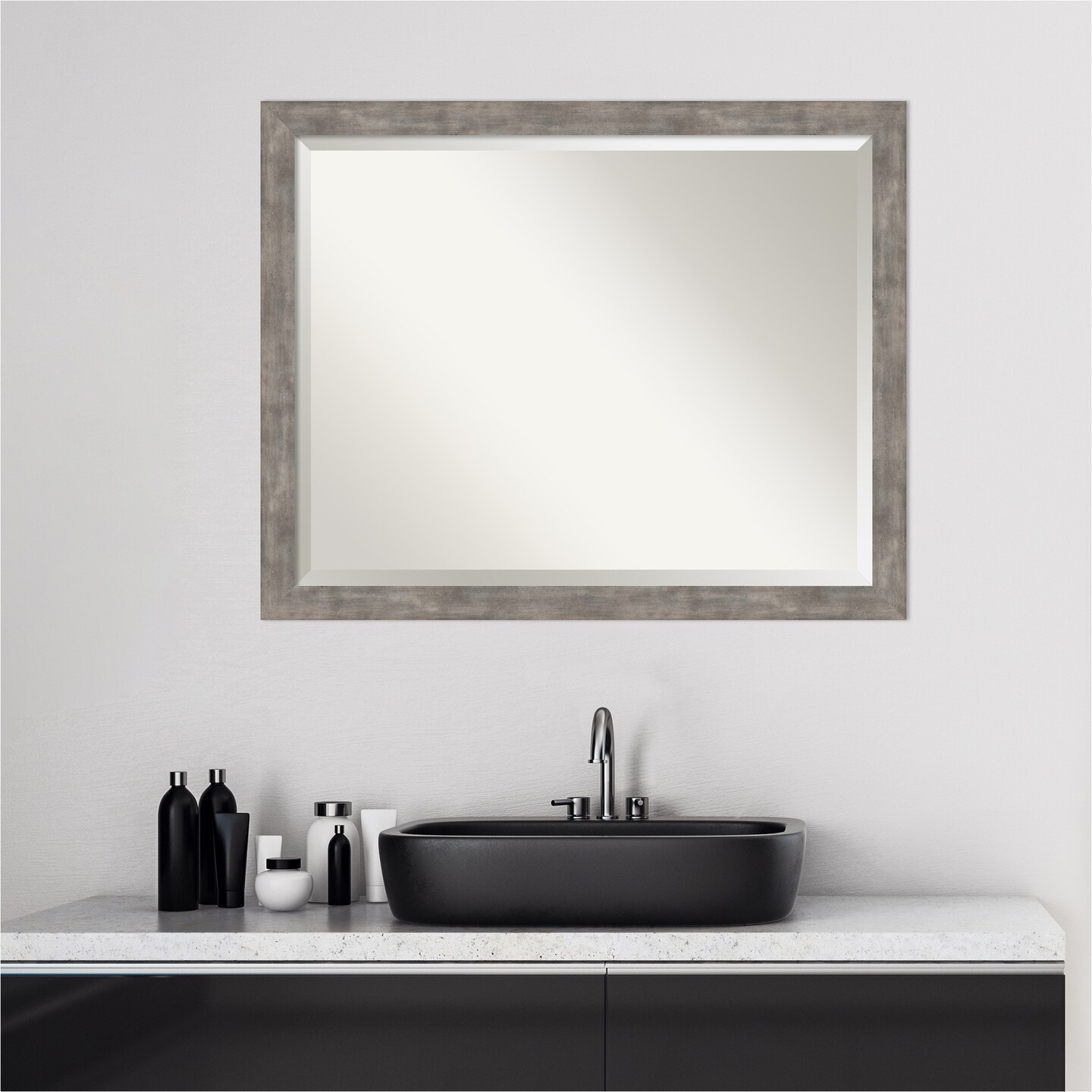 Beveled Wood Bathroom Wall Mirror, Marred Frame