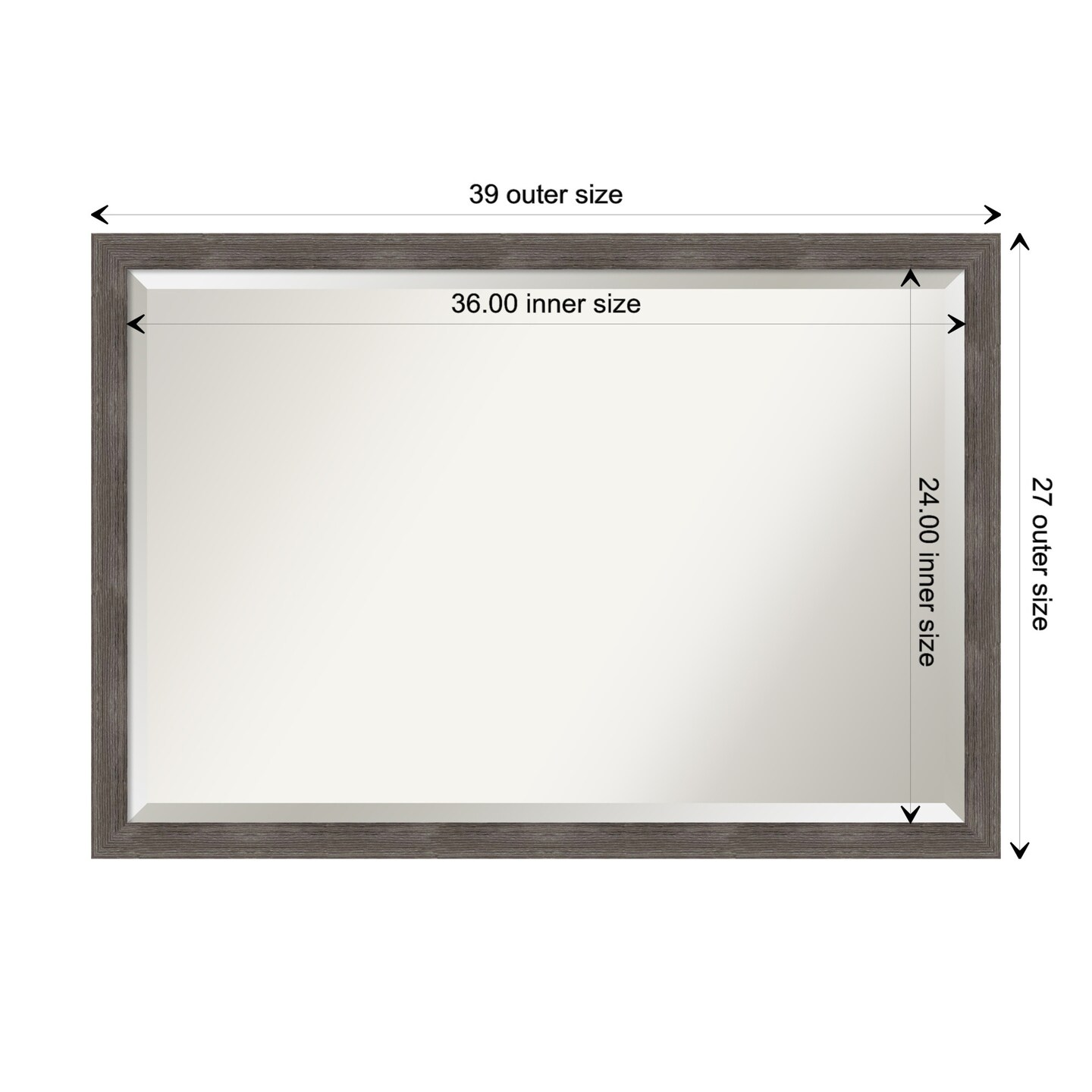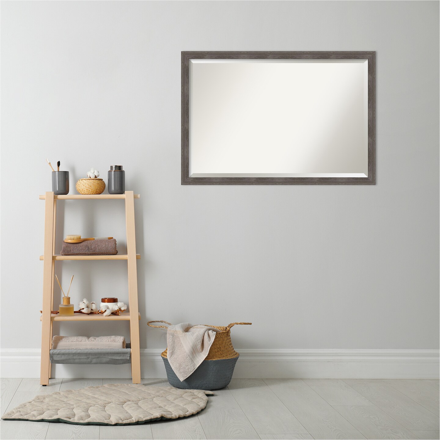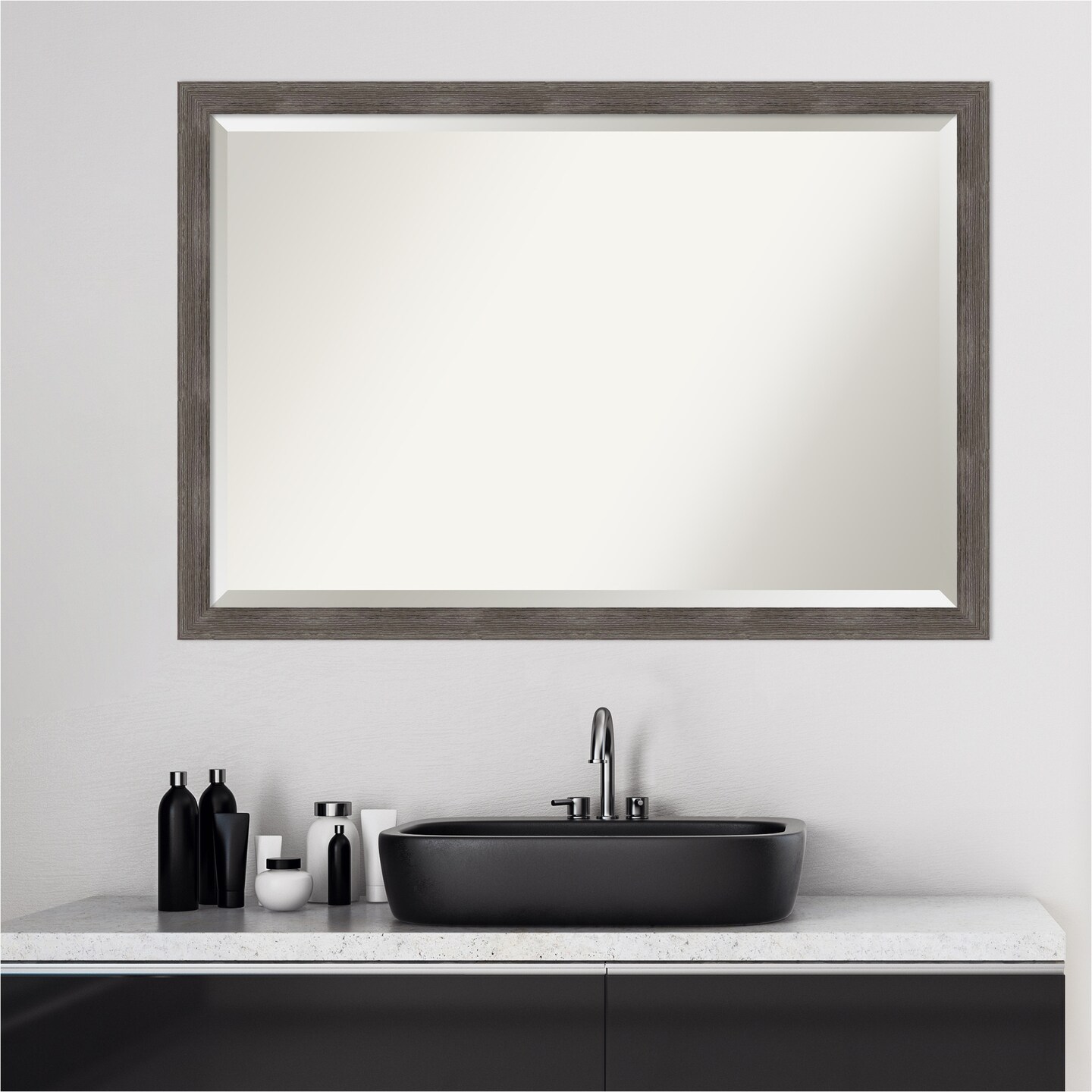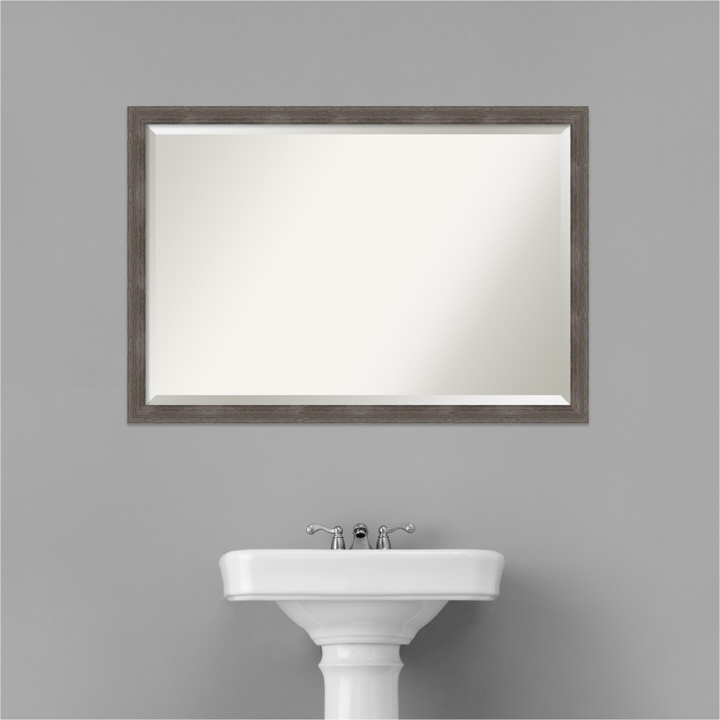 Beveled Wood Bathroom Wall Mirror, Pinstripe Lead Grey Frame