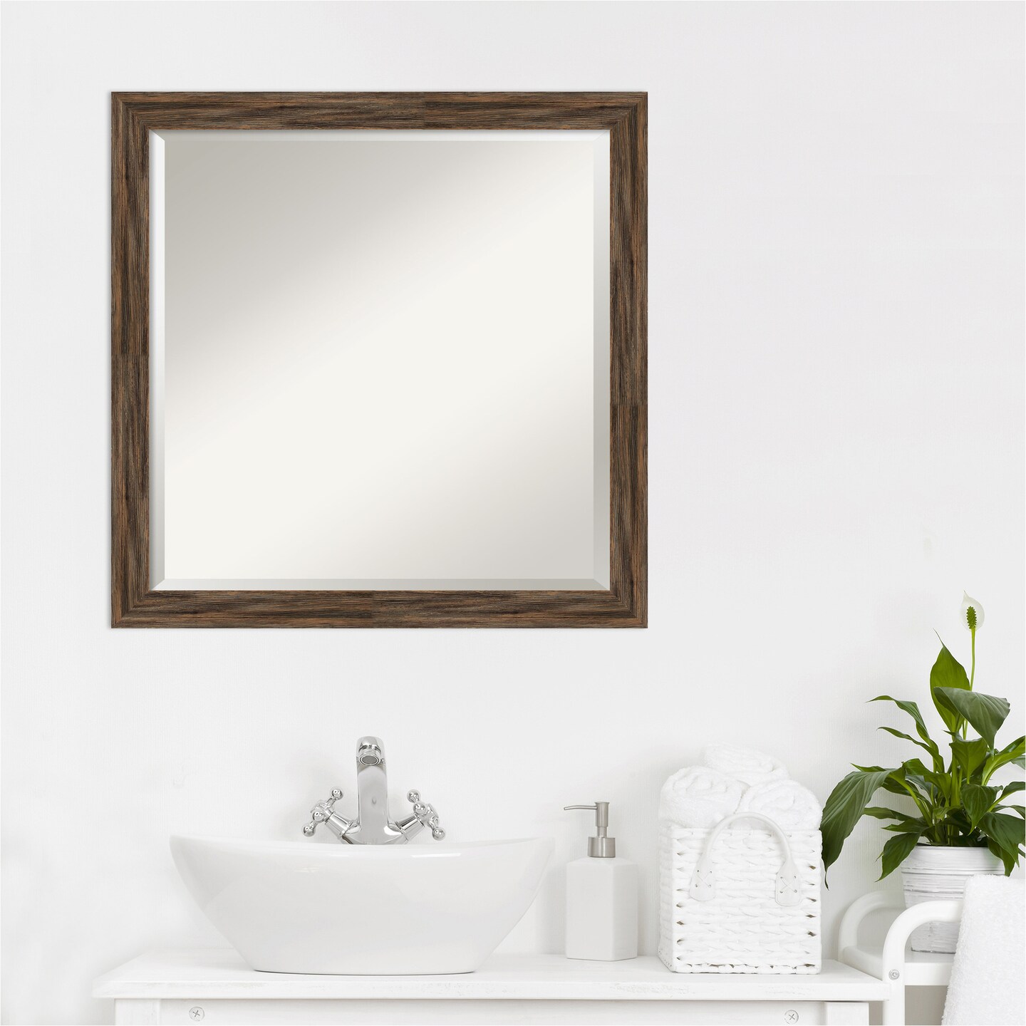 Beveled Wood Bathroom Wall Mirror, Regis Narrow Frame