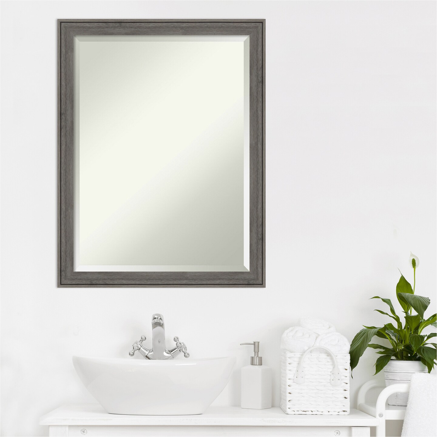 Beveled Wood Bathroom Wall Mirror, Regis Narrow Frame