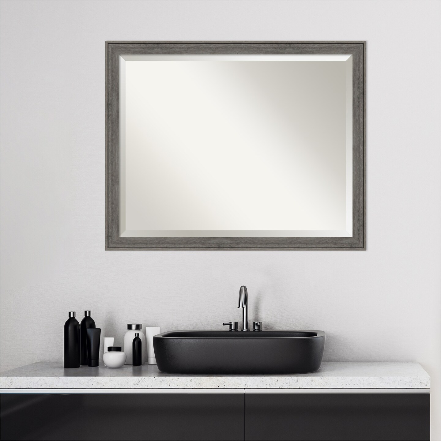 Beveled Wood Bathroom Wall Mirror, Regis Narrow Frame
