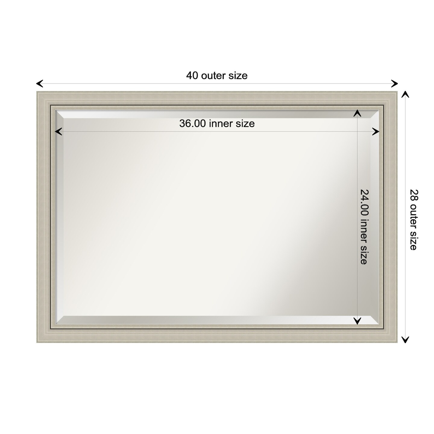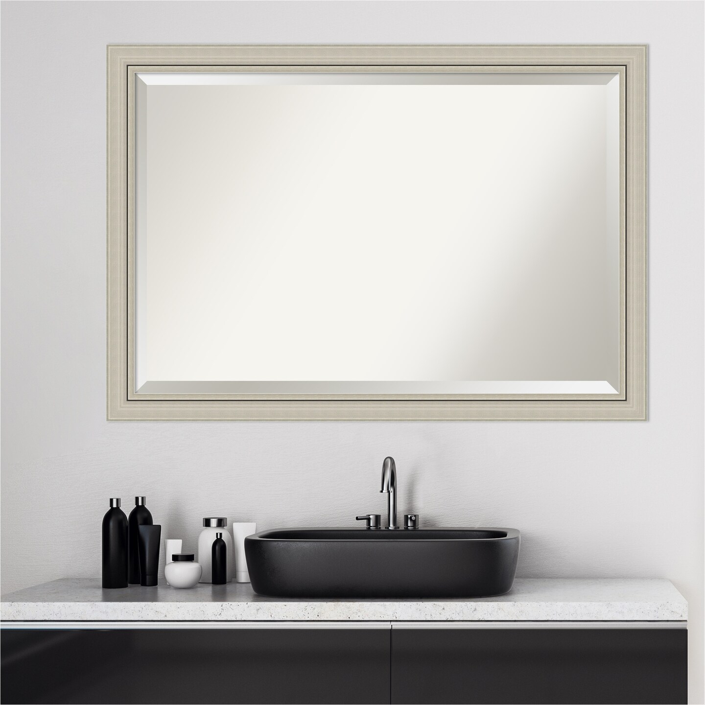 Beveled Wood Bathroom Wall Mirror, Romano Silver Narrow Frame
