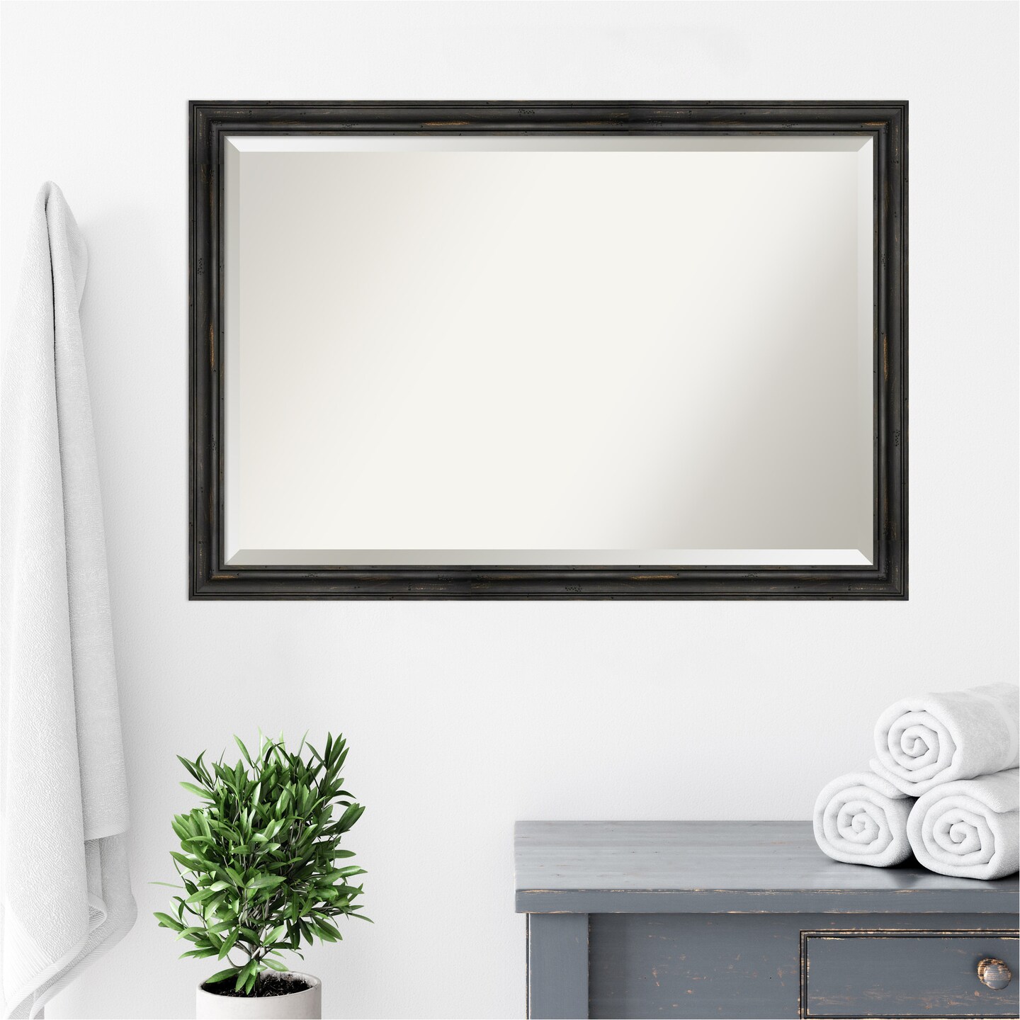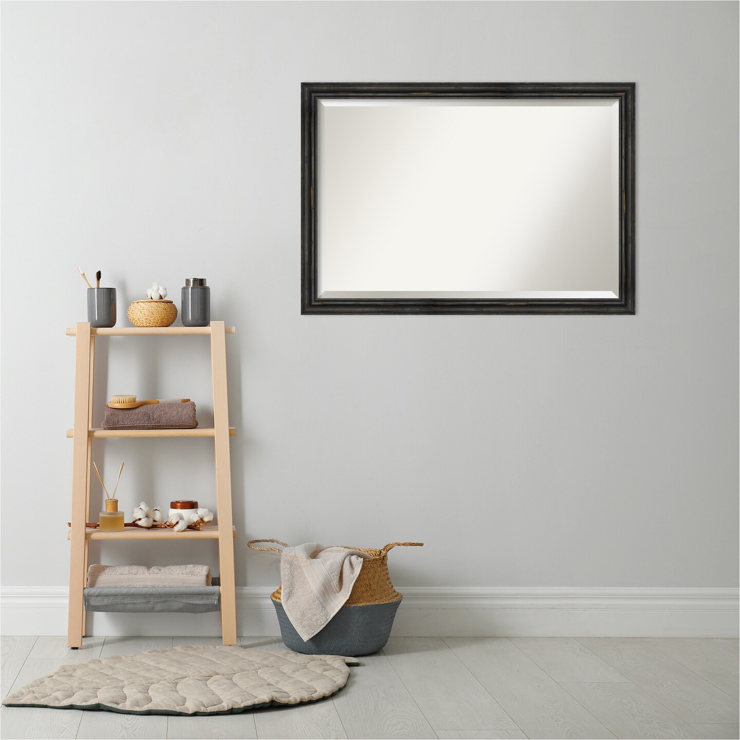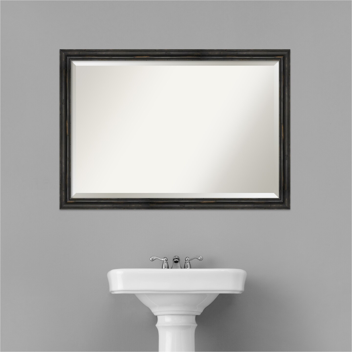 Beveled Wood Bathroom Wall Mirror, Rustic Pine Narrow Frame