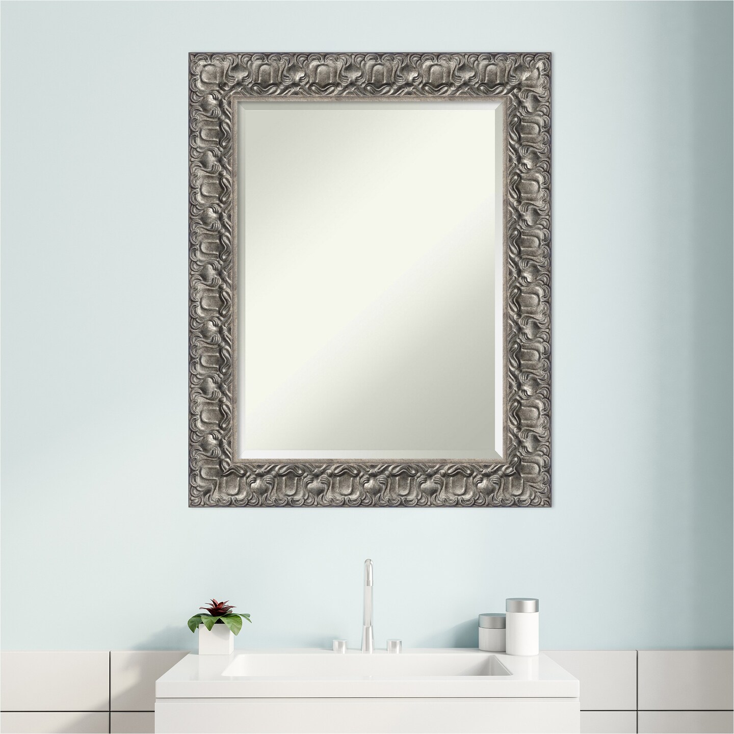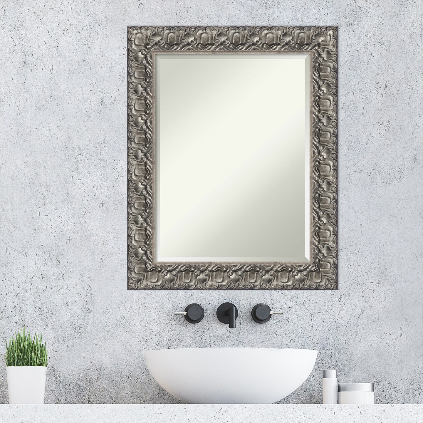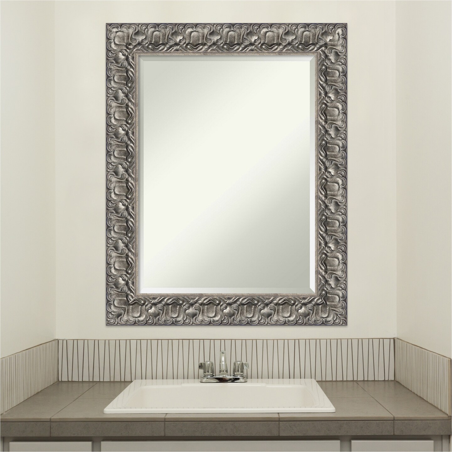 Beveled Wood Bathroom Wall Mirror, Silver Luxor Frame