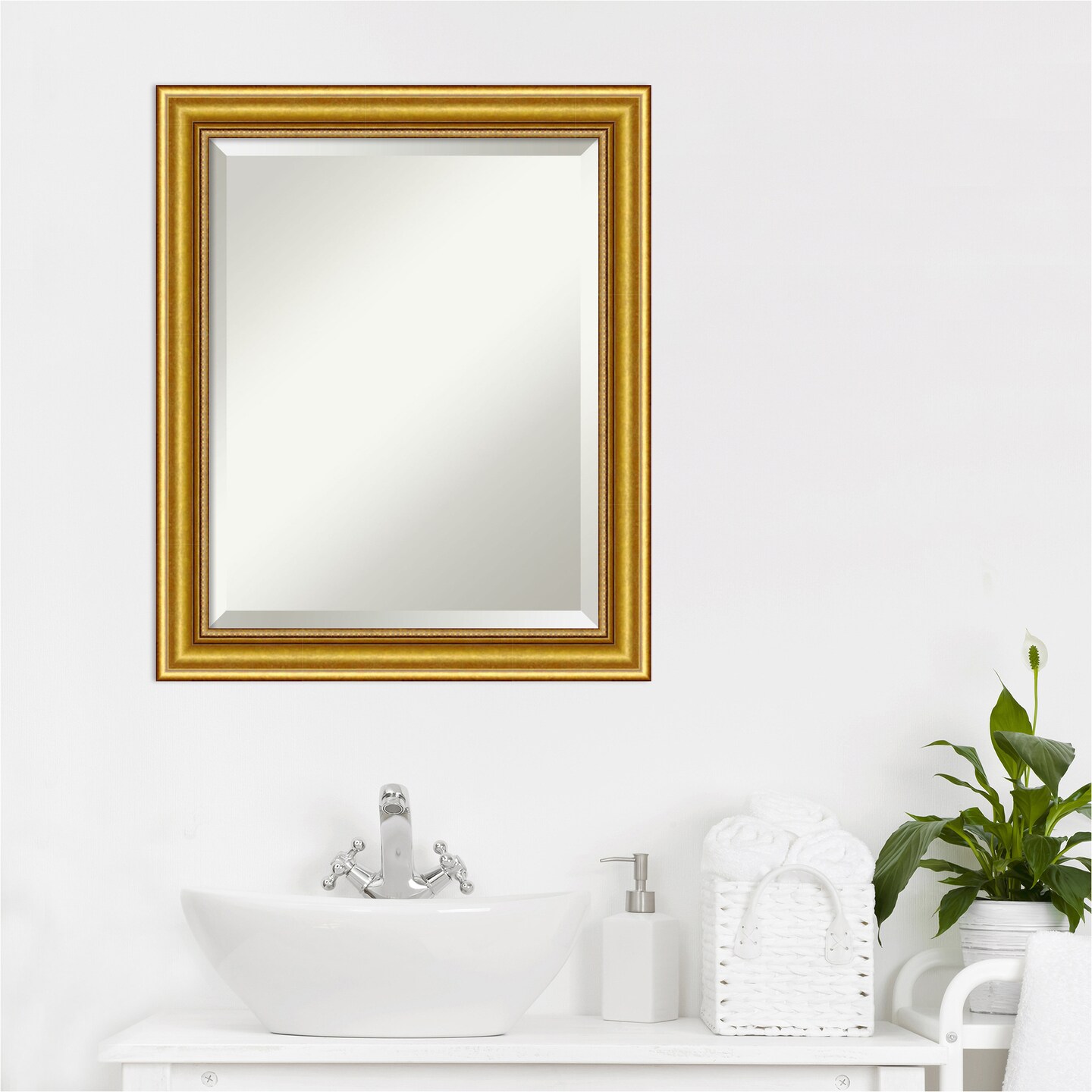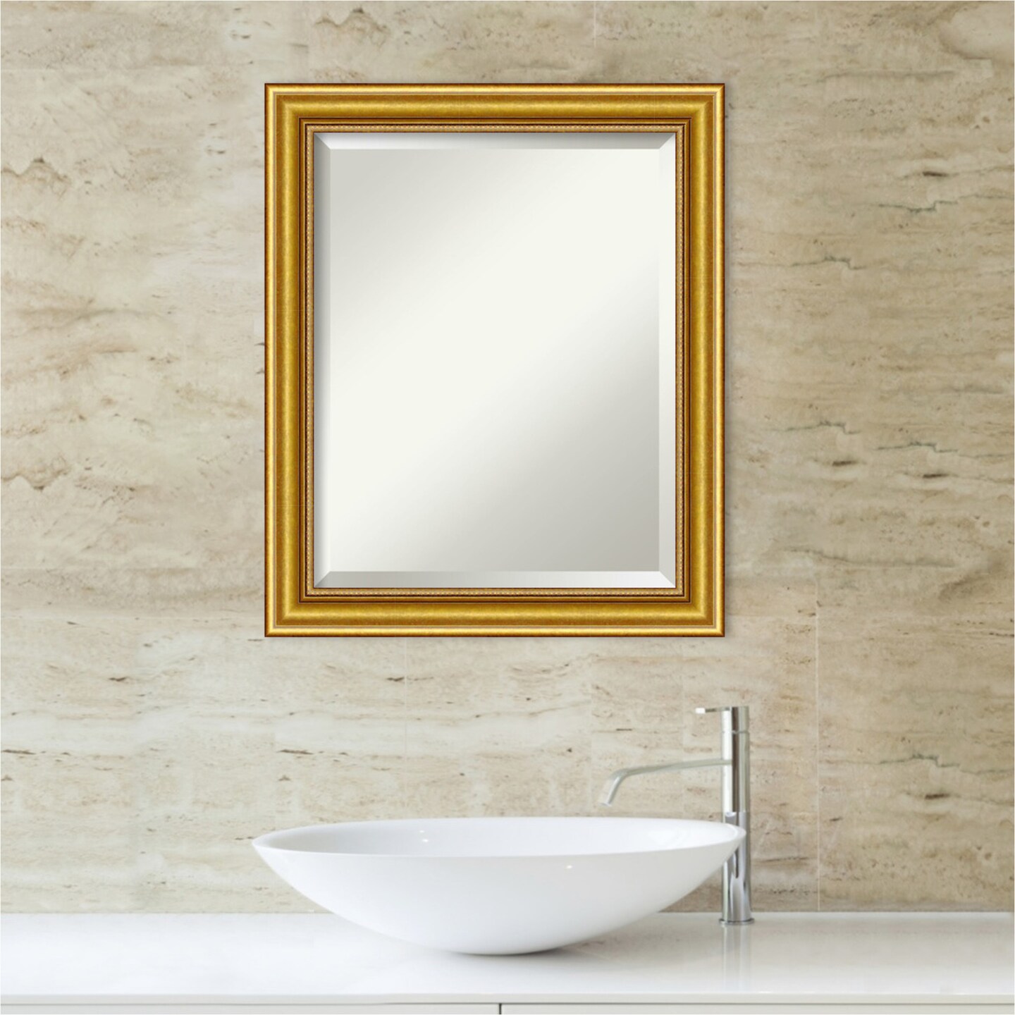 Beveled Wood Bathroom Wall Mirror, Townhouse Gold Frame