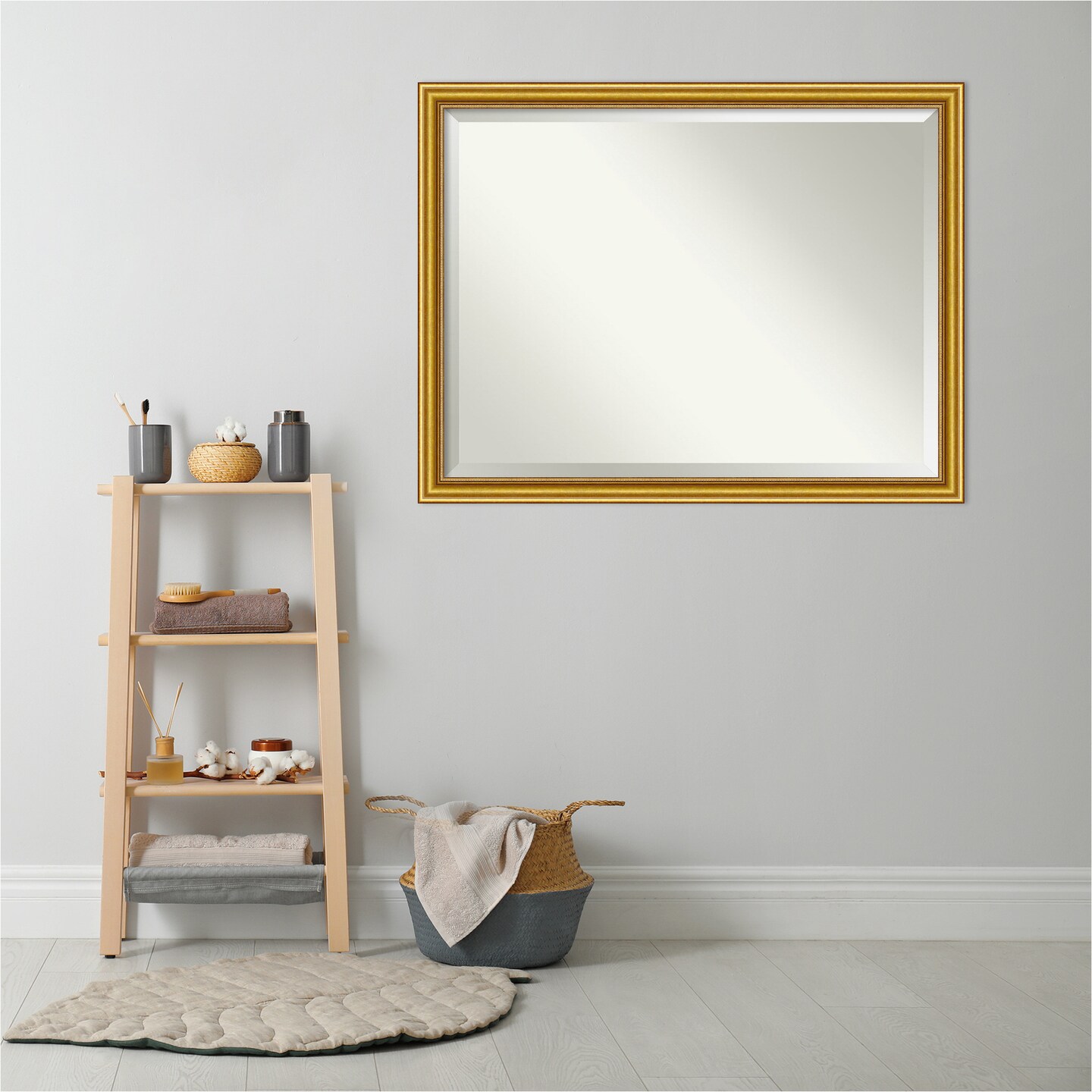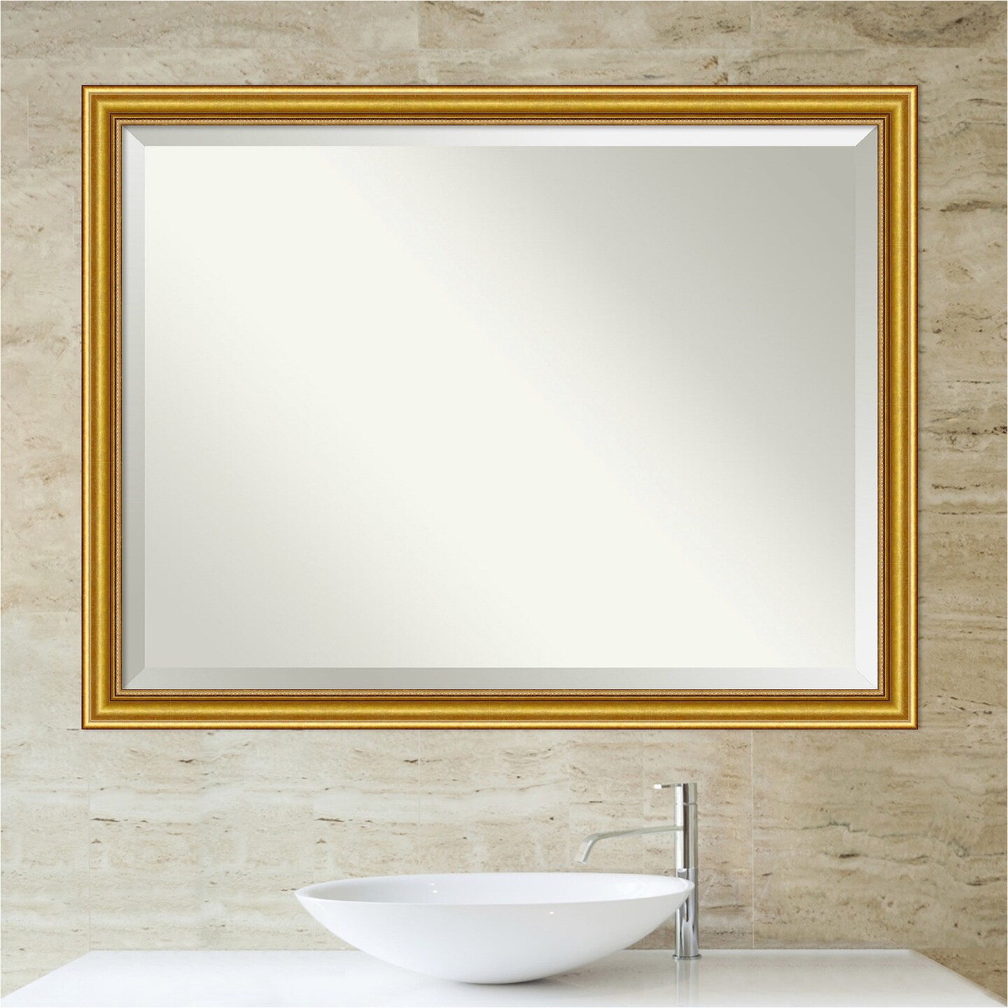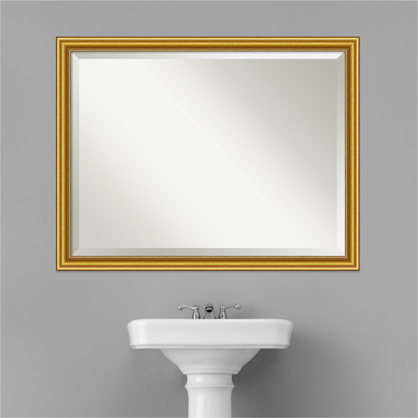 Beveled Wood Bathroom Wall Mirror, Townhouse Gold Frame
