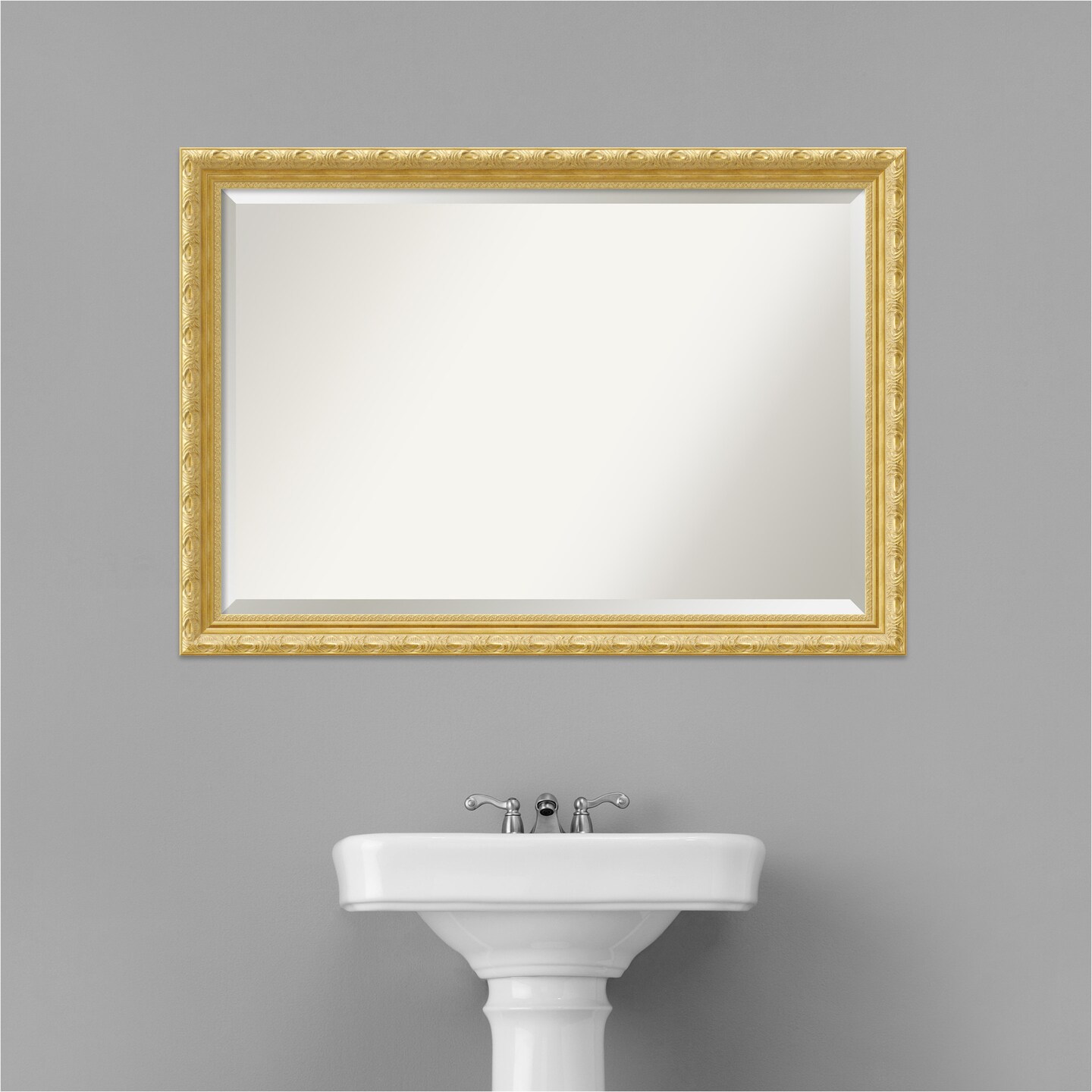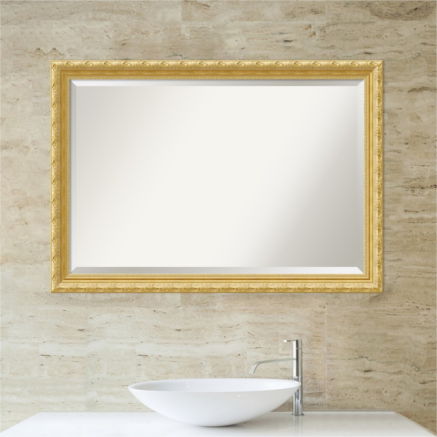 Beveled Wood Bathroom Wall Mirror, Versailles Gold Frame