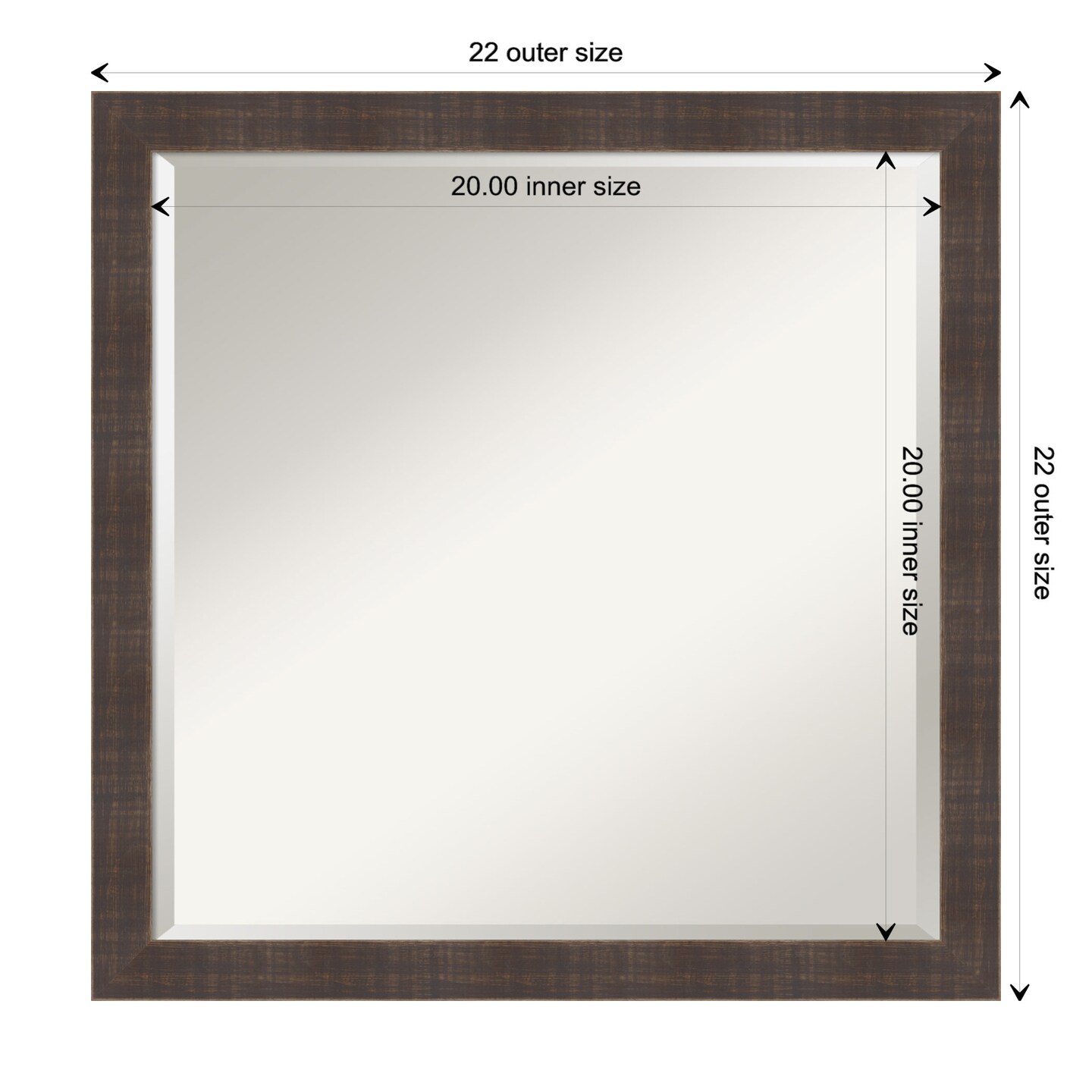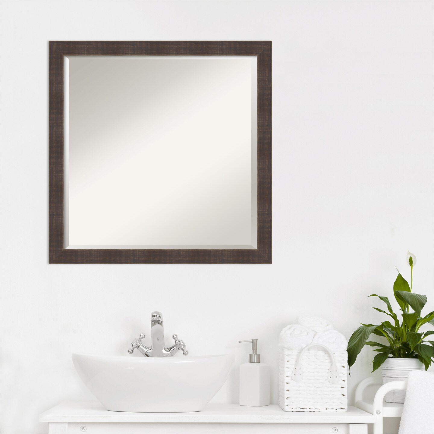 Beveled Wood Bathroom Wall Mirror, Whiskey Brown Rustic Frame