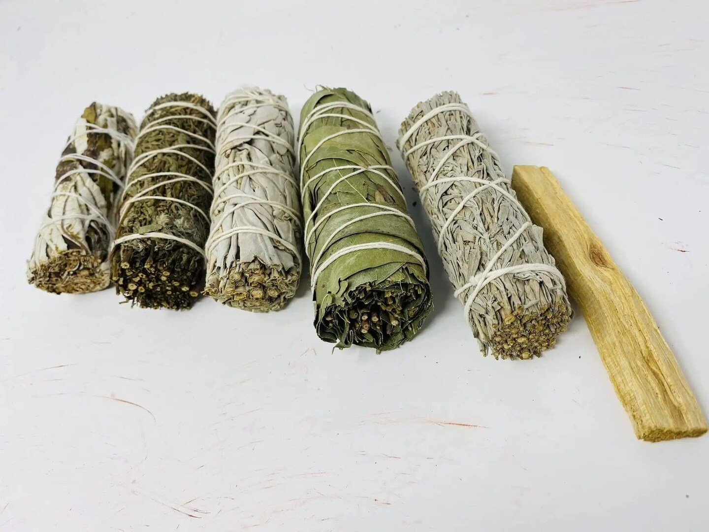 Bholi Sage Plus Sage Smudge Kit Pack of 6 Pure Smudge Sticks for Cleansing Negative Energy and Healing Rituals Consist of Yerba Santa Mugwort White Sage Eucalyptus Blue Sage & Palo Santo Stick