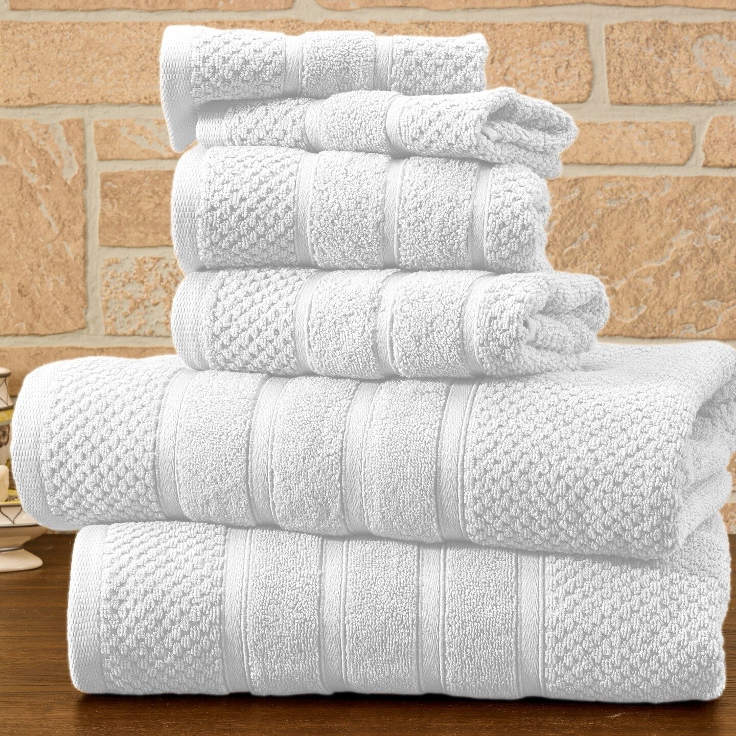 Bibb Home 6 Piece Egyptian Cotton Towel Set Bath Hand Washcloths White 600Gsm