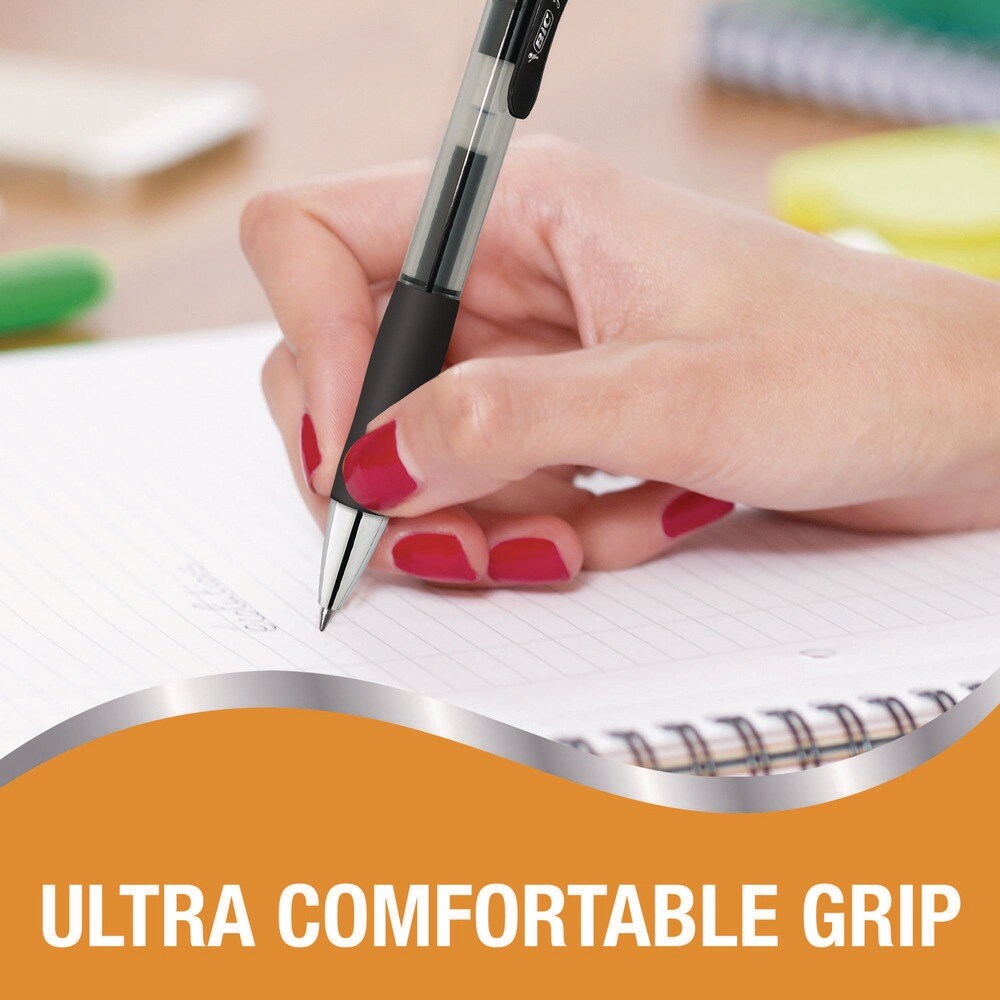 BIC Gel-ocity Pro 0.7 mm Medium Gel Pen - Black Ink/Translucent Black/Black Barrel (4/Pack)