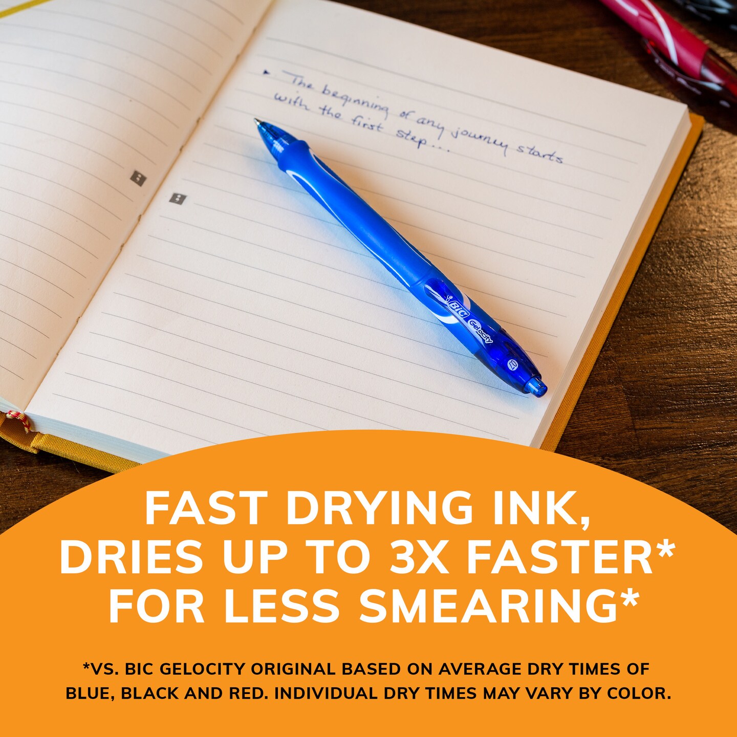 BIC Gelocity Quick Dry Black and Blue Gel Pens, Medium Point (0.7mm), 24-Count Pack, Retractable Gel Pens With Comfortable Full Grip