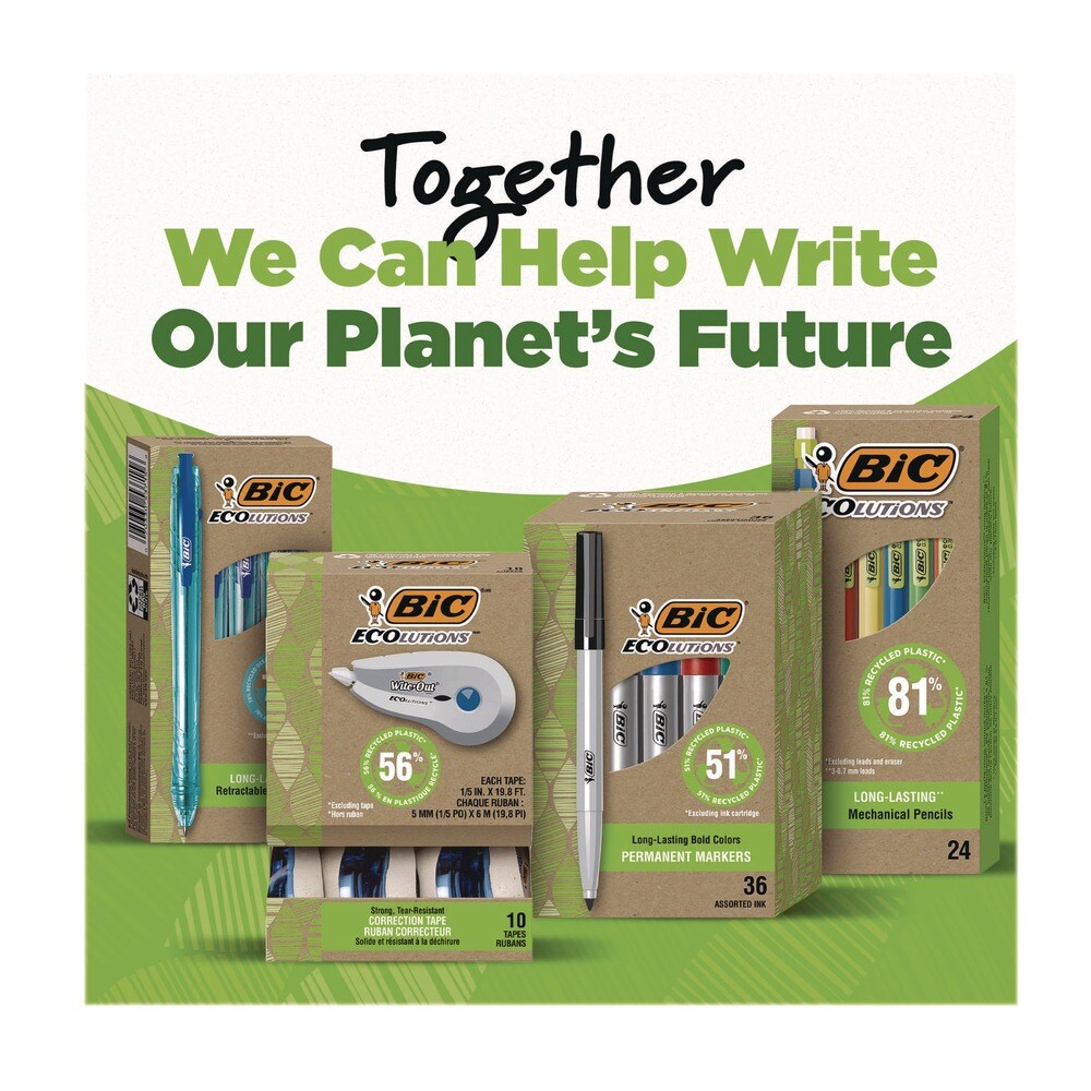 BIC Medium 1 mm Ecolutions Retractable Gel Pen - Assorted Ink Colors, Blue Barrel (12/Pack)