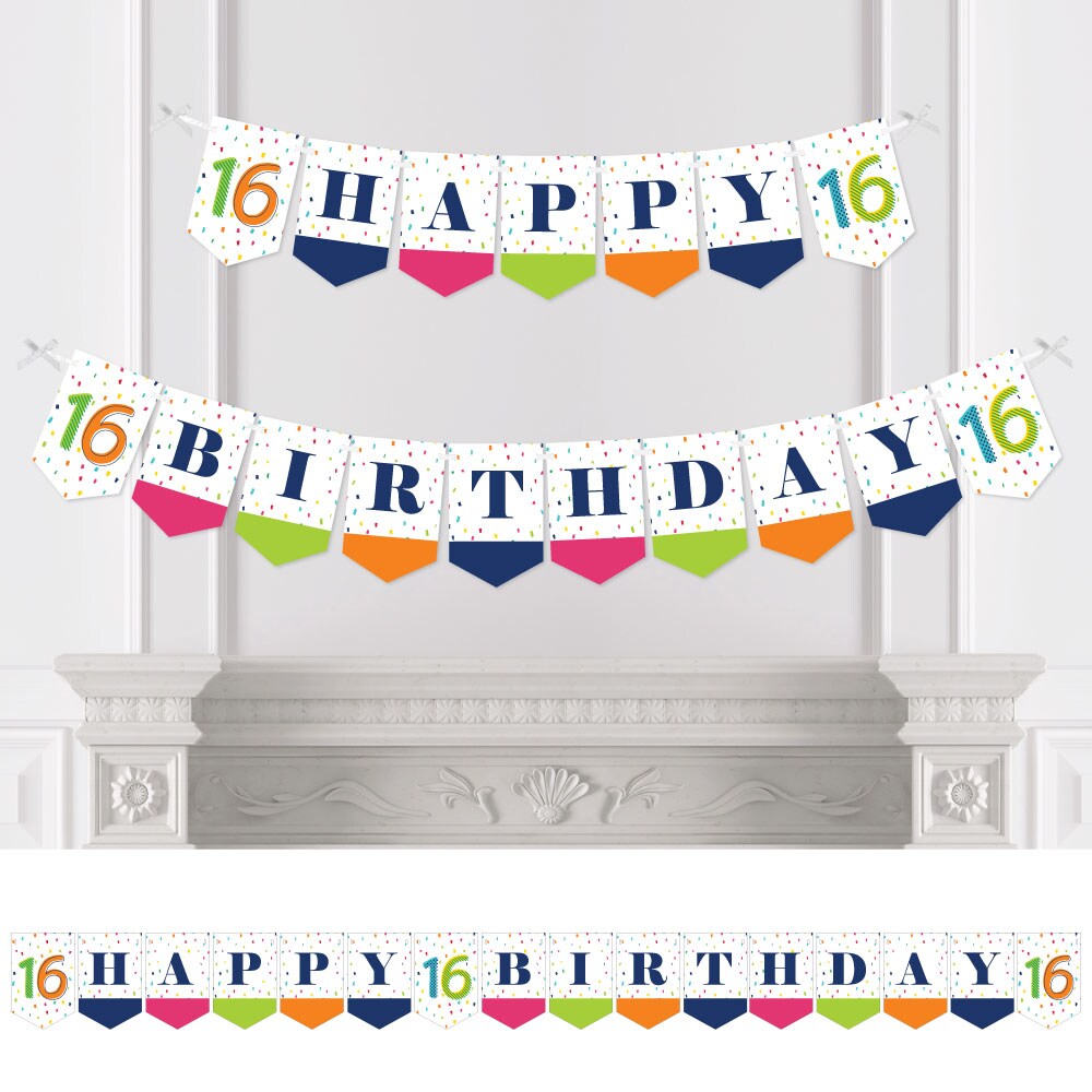 Big Dot of Happiness 16th Birthday - Cheerful Happy Birthday - Colorful Sweet Sixteen Birthday Bunting Banner - Birthday Party Decor - Happy Birthday