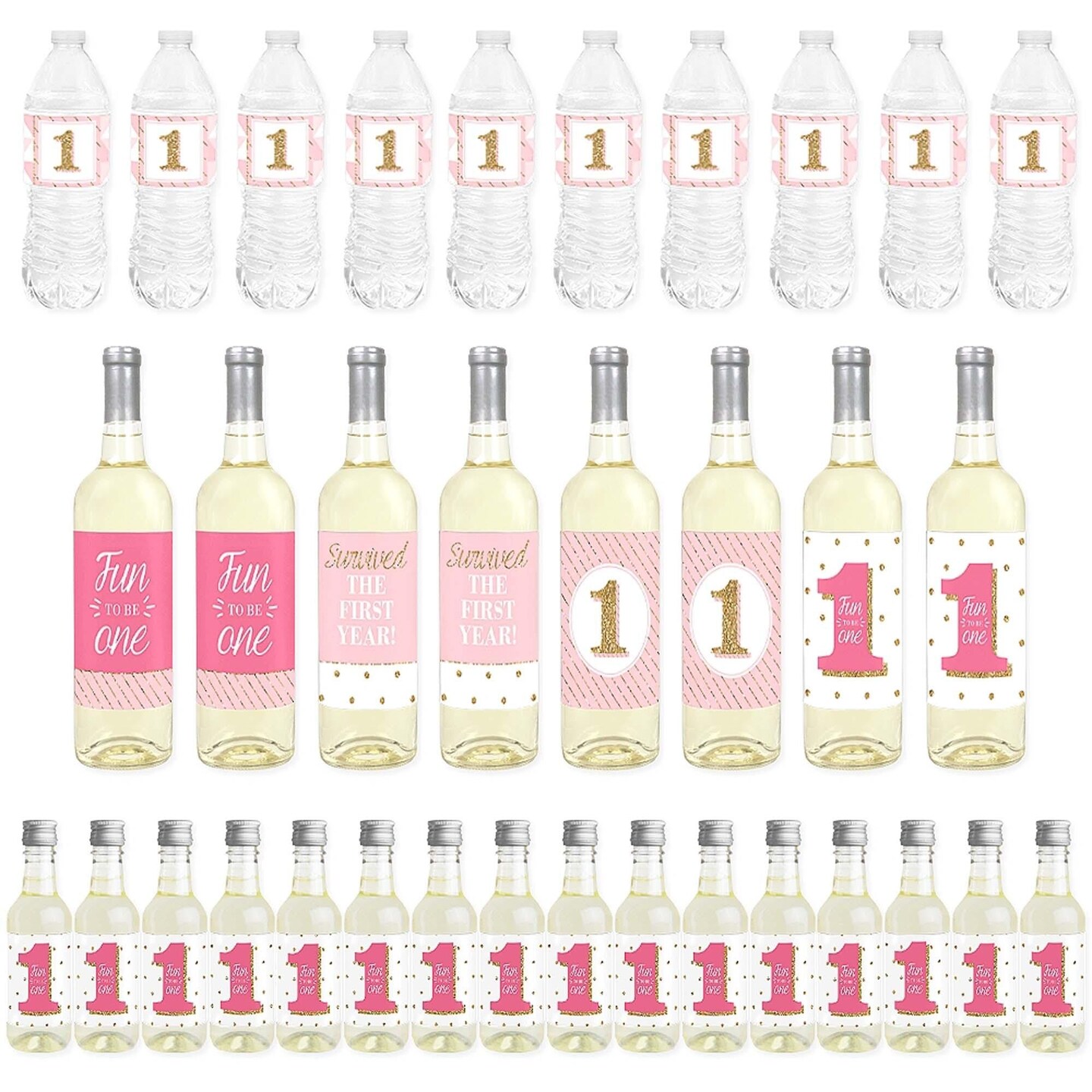 Big Dot of Happiness 1st Birthday Girl - Fun to be One - First Birthday Party Decorations - Beverage Bar Kit - 34 Pieces