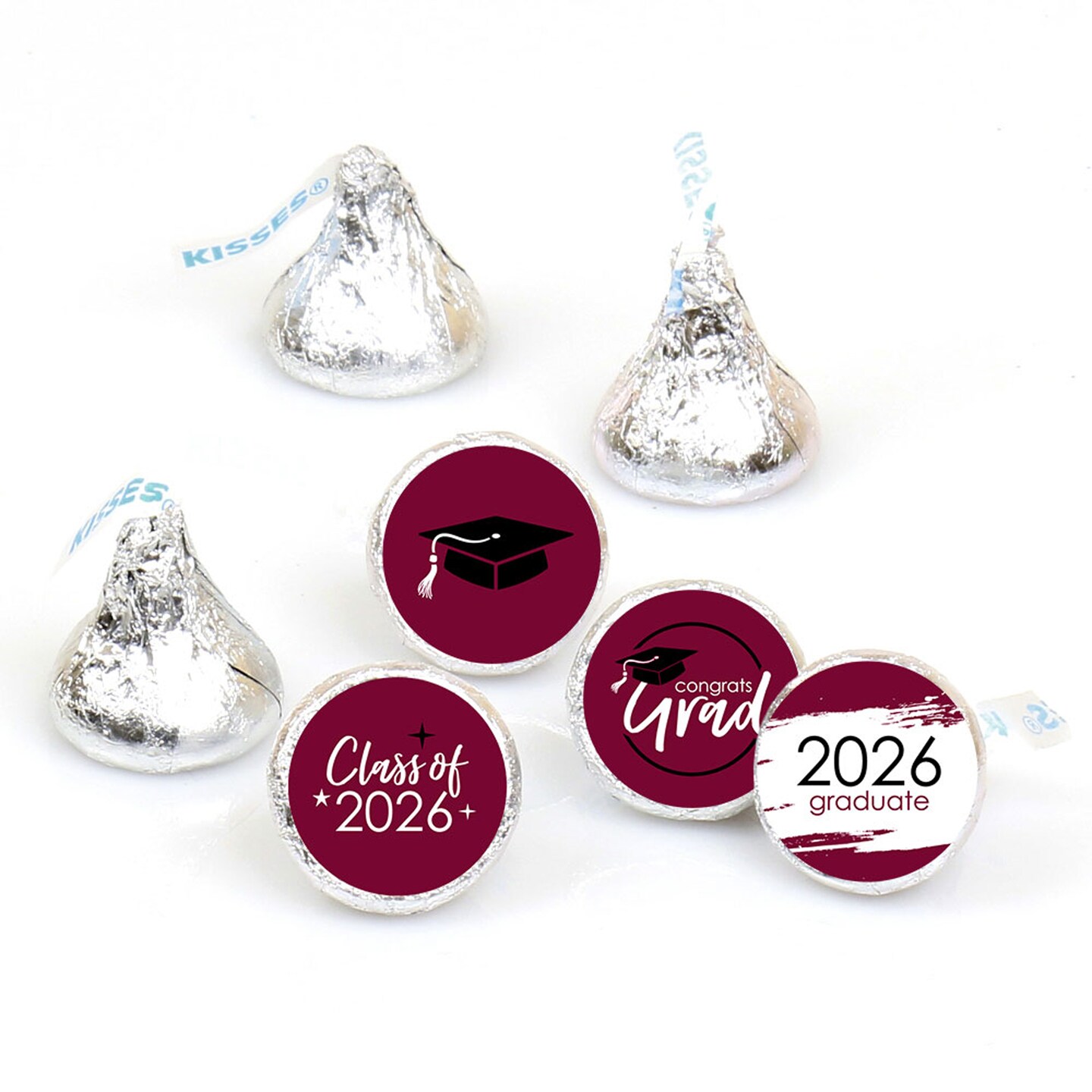 Big Dot of Happiness 2026 Maroon Graduation Party Round Candy Sticker Favors - Labels Fits Chocolate Candy (1 Sheet of 108)