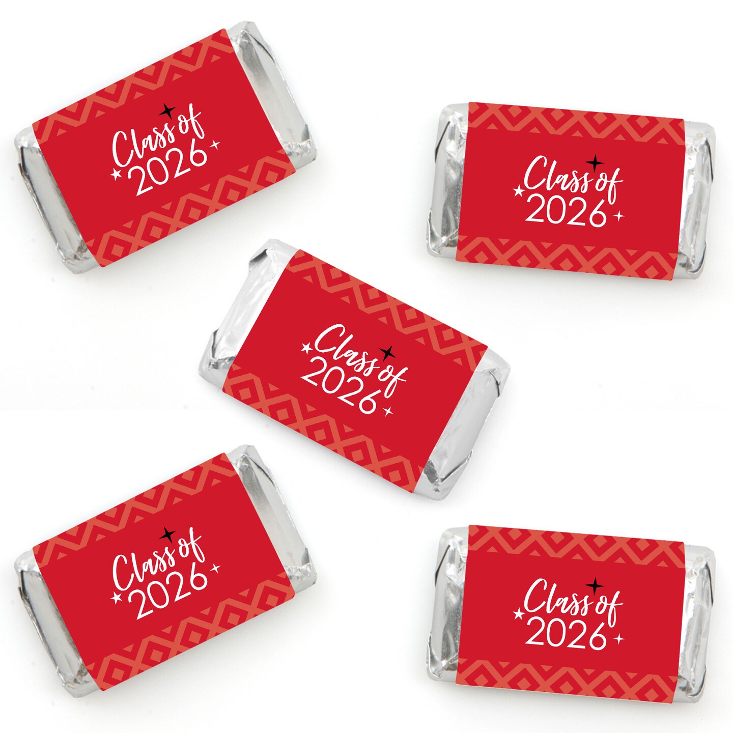 Big Dot of Happiness 2026 Red Graduation Party - Mini Candy Bar Wrapper Stickers - Small Favors - 40 Count
