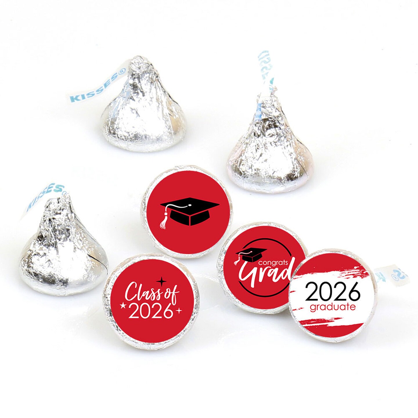 Big Dot of Happiness 2026 Red Graduation Party Round Candy Sticker Favors - Labels Fits Chocolate Candy (1 Sheet of 108)