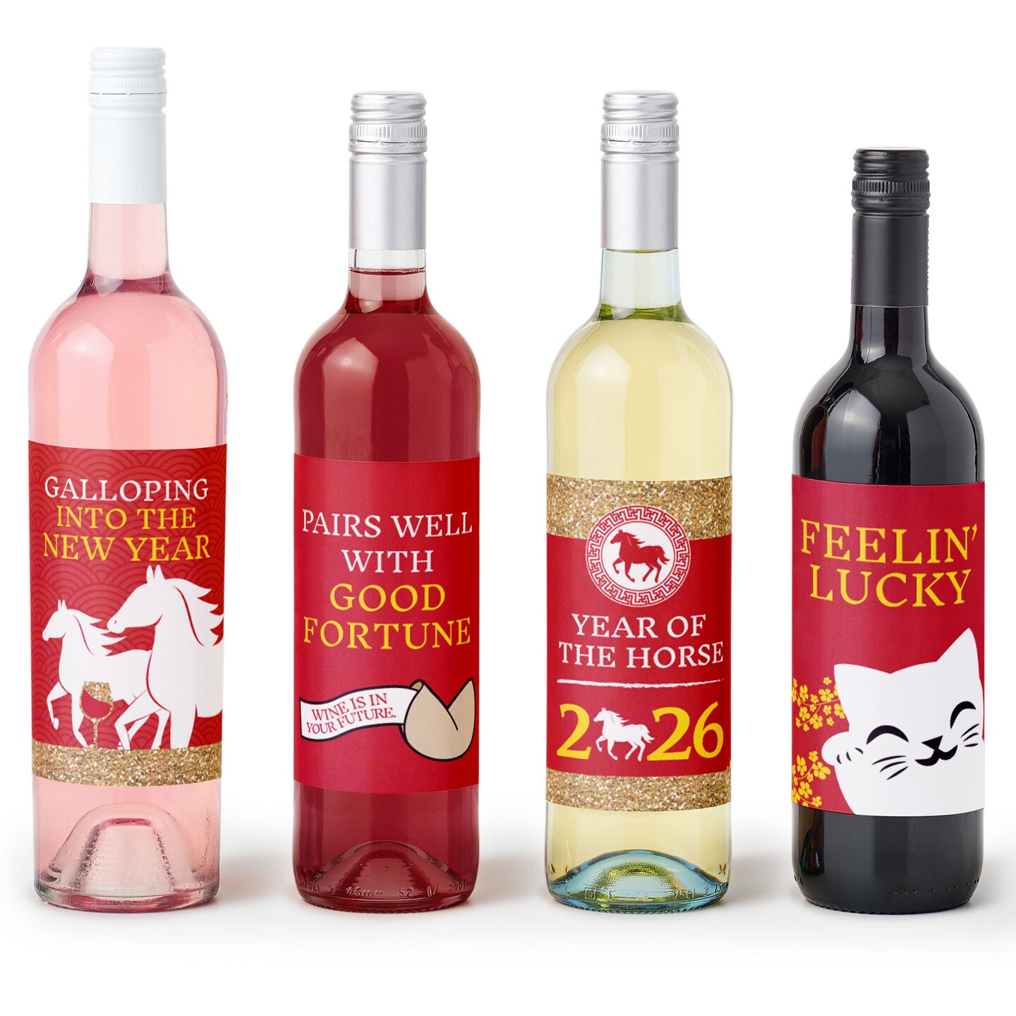 Big Dot of Happiness 2026 Year of the Horse - Lunar New Year Decorations for Women and Men - Wine Bottle Label Stickers - Set of 4
