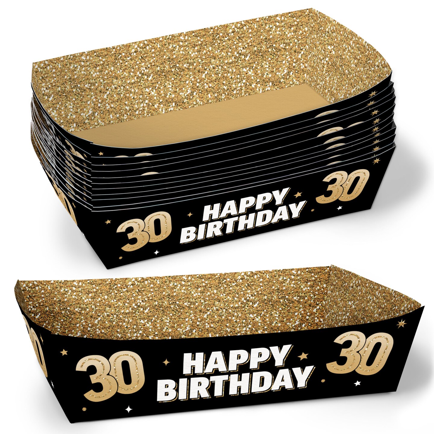 Big Dot of Happiness 30th Birthday Party Paper Food Trays, Disposable Food Boats, Black & Gold Picnic, BBQ, Double-Sided Paper Meal Holders - 12 Ct