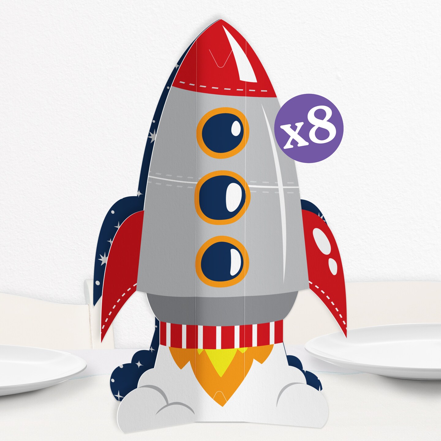 Big Dot of Happiness 3D Blast Off to Outer Space Centerpiece Table Decorations, Freestanding Rocket Baby Shower or Birthday Centerpieces - 8 Count