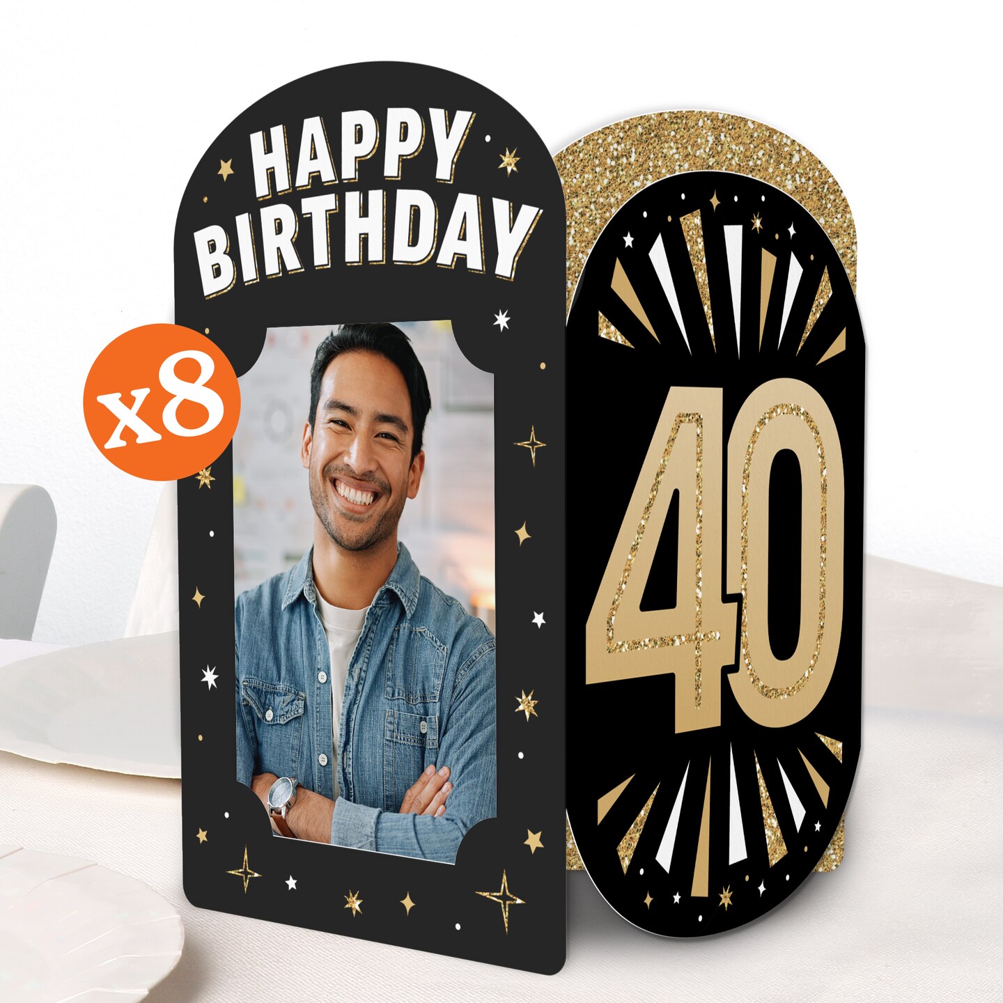 Big Dot of Happiness 40th Birthday Photo Holder Centerpieces, 4x6 Picture Display Box, Black & Gold Table Decoration for Adult Birthday Decor, 8 Count