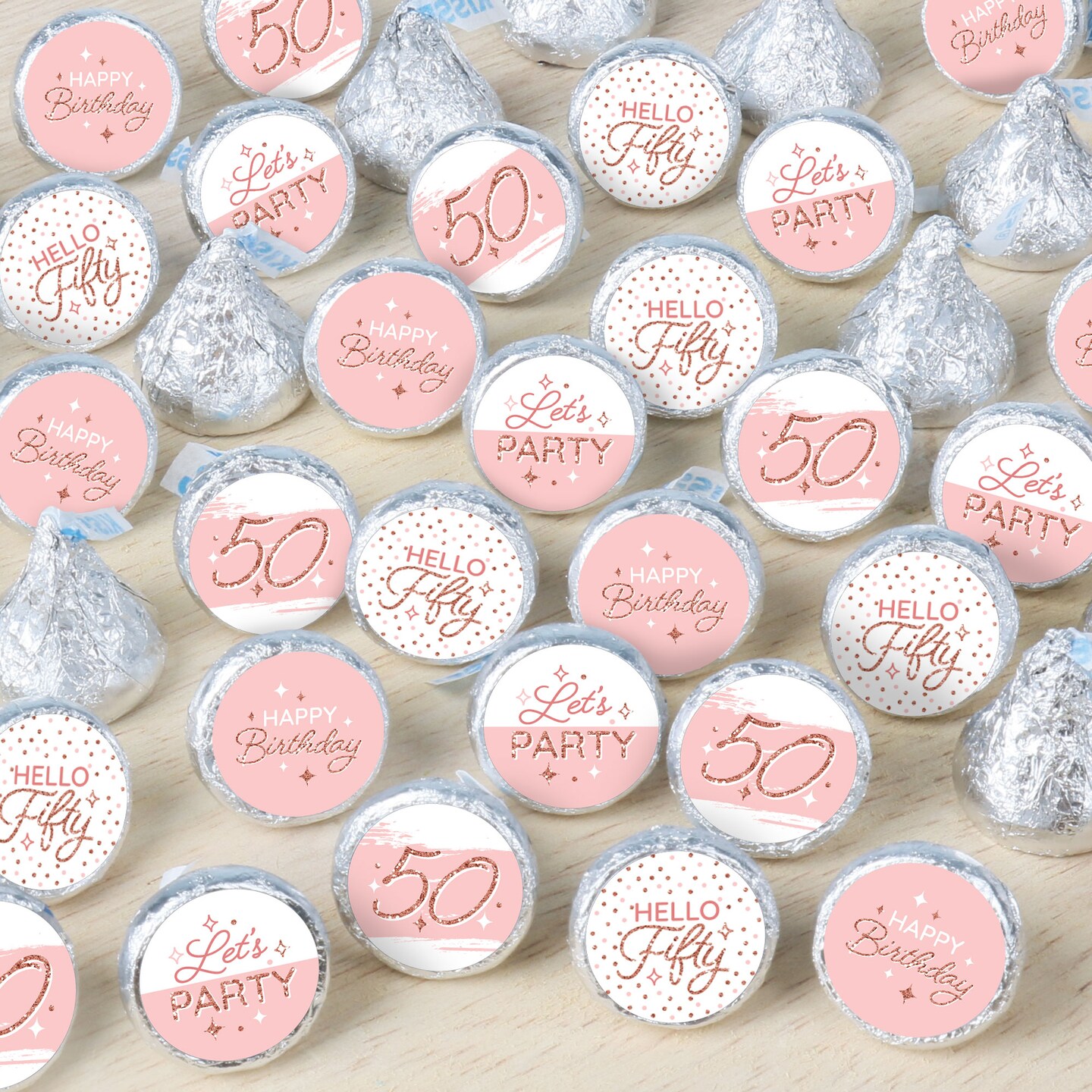 Big Dot of Happiness 50th Pink Rose Gold Birthday - Happy Birthday Party Small Round Candy Stickers - Party Favor Labels - 324 Count