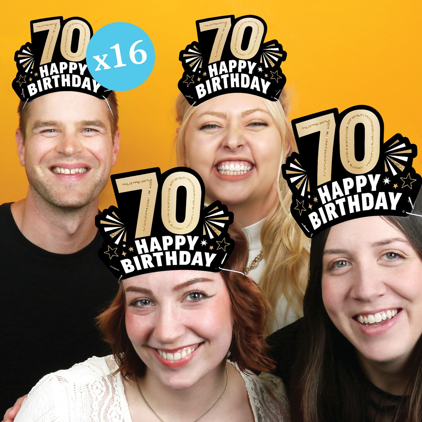 Big Dot of Happiness 70th Birthday Paper Crowns, Happy Birthday Party Headbands for Adults, DIY Black & Gold Milestone Party Hat Favors, 16 Count