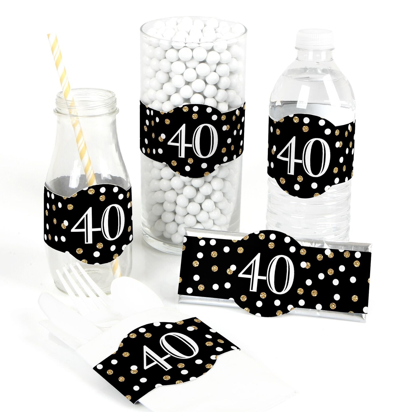 Big Dot of Happiness Adult 40th Birthday - Gold - DIY Party Supplies - Birthday Party DIY Wrapper Favors & Decorations - Set of 15