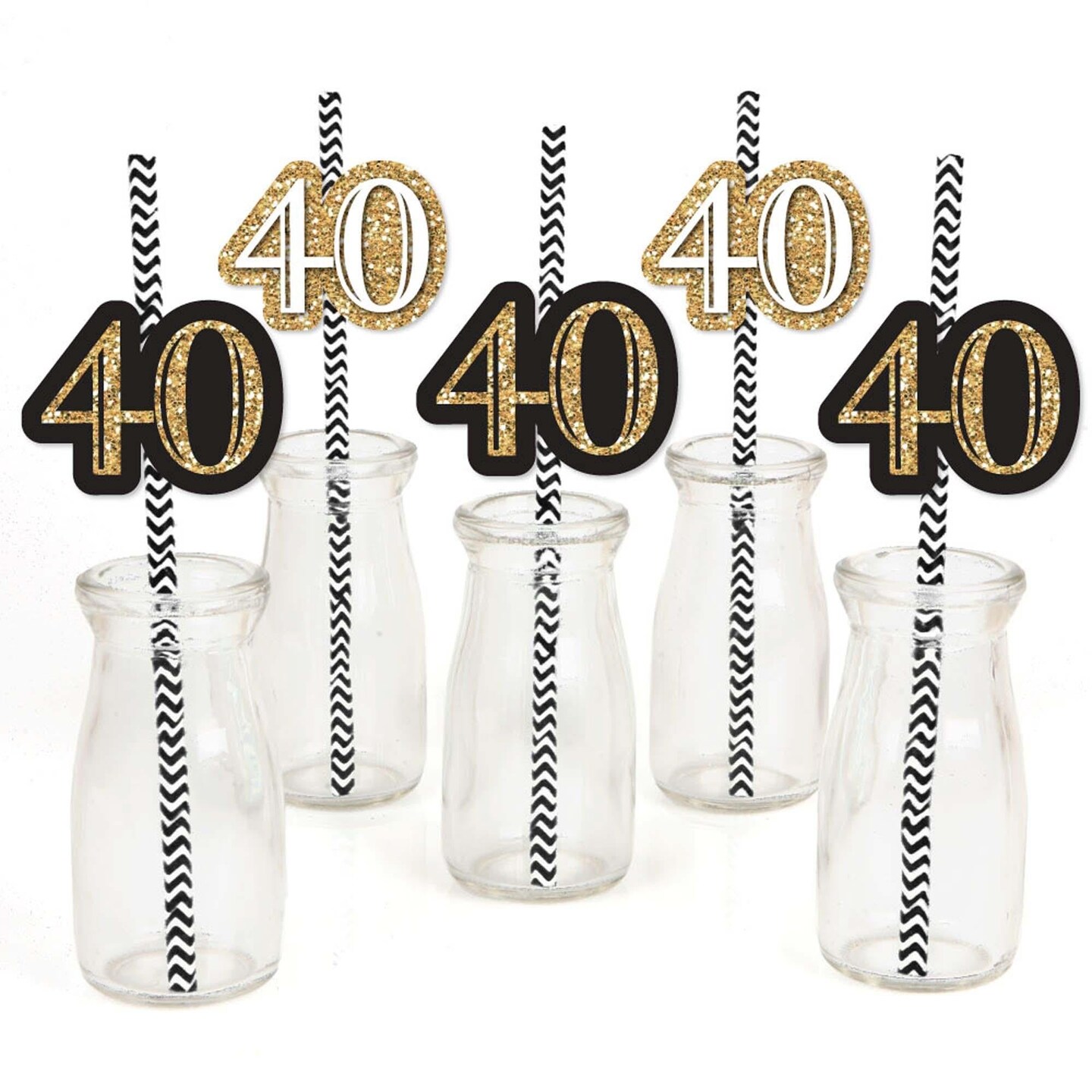 Big Dot of Happiness Adult 40th Birthday - Gold - Paper Straw Decor - Birthday Party Striped Decorative Straws - Set of 24