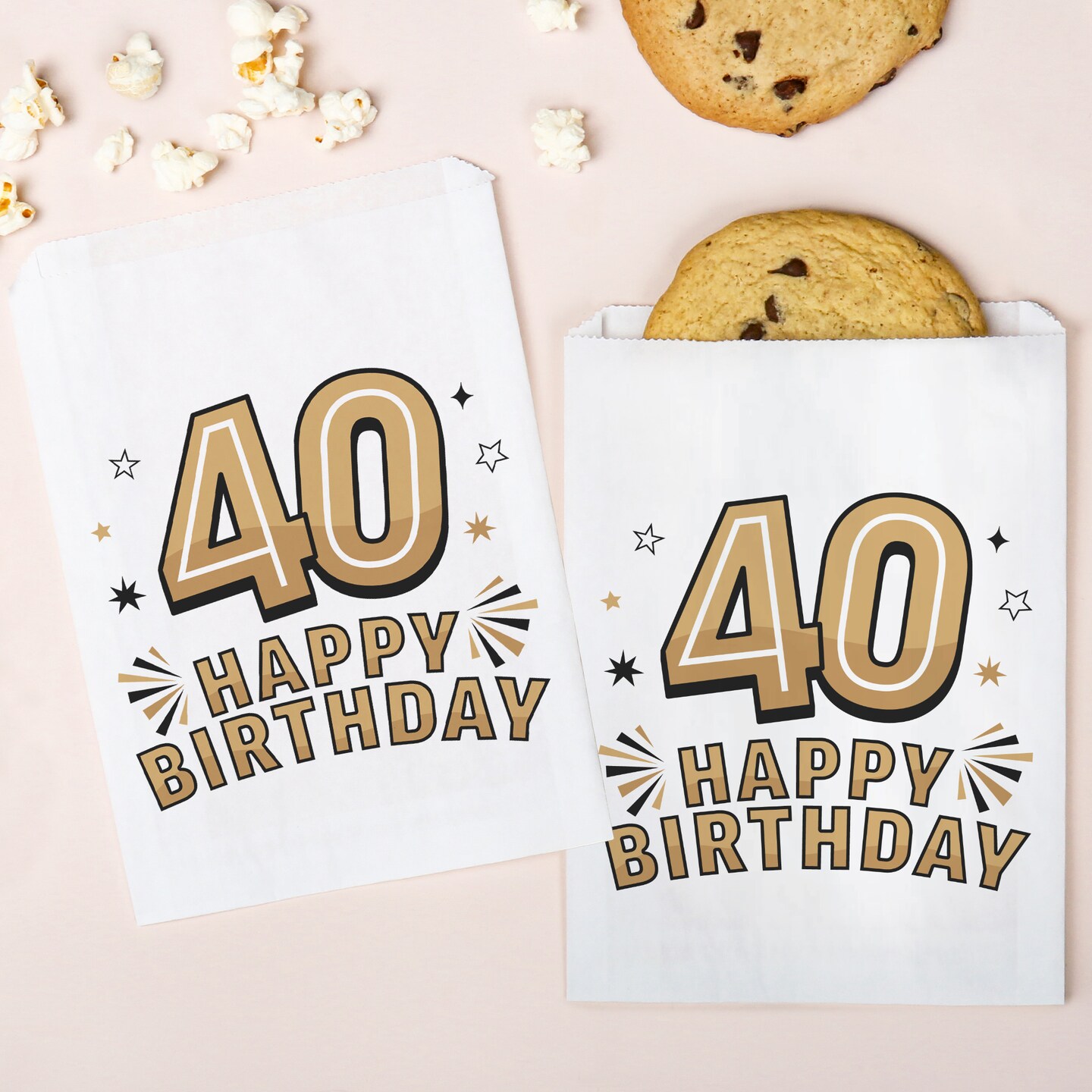 Big Dot of Happiness Adult 40th Birthday White Paper Treat Bags, Black & Gold Individual Greaseproof Brown Paper Sandwich Cookie Bags - 25 Count