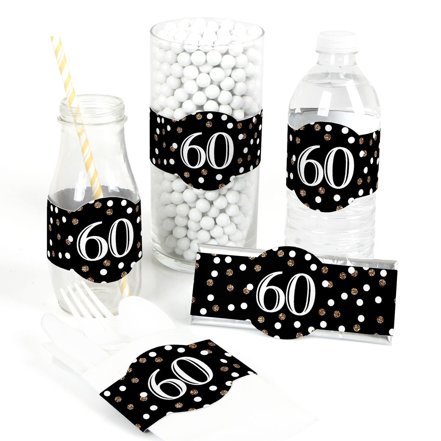Big Dot of Happiness Adult 60th Birthday - Gold - DIY Party Supplies - Birthday Party DIY Wrapper Favors & Decorations - Set of 15